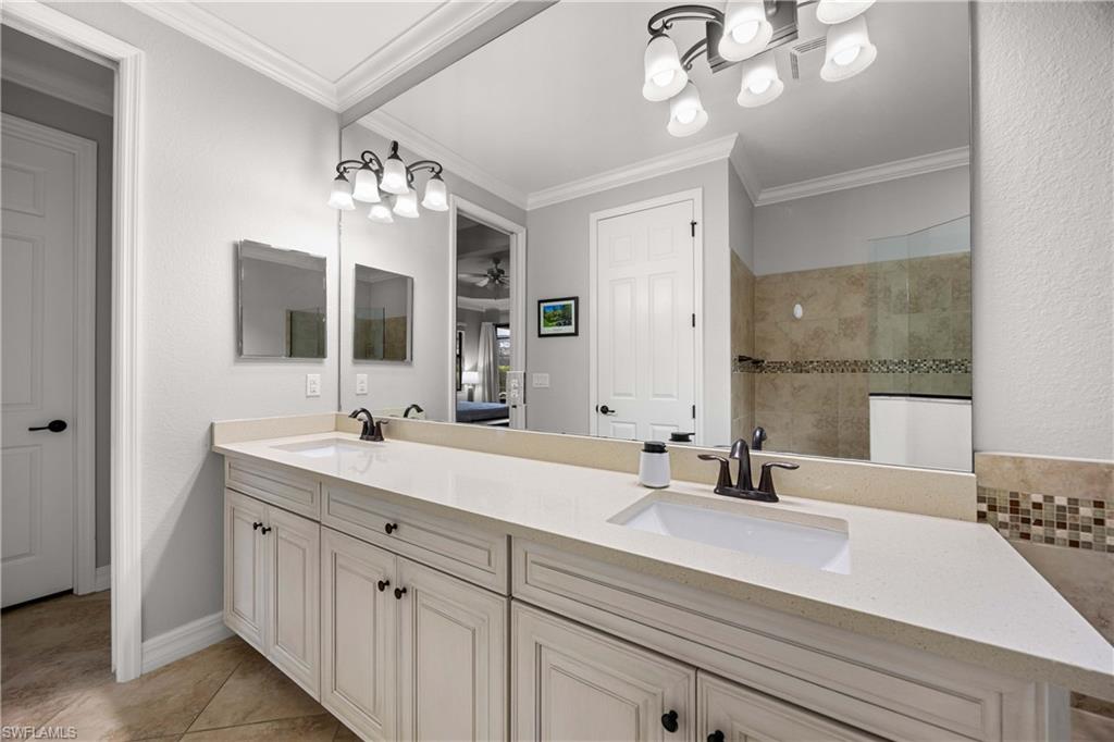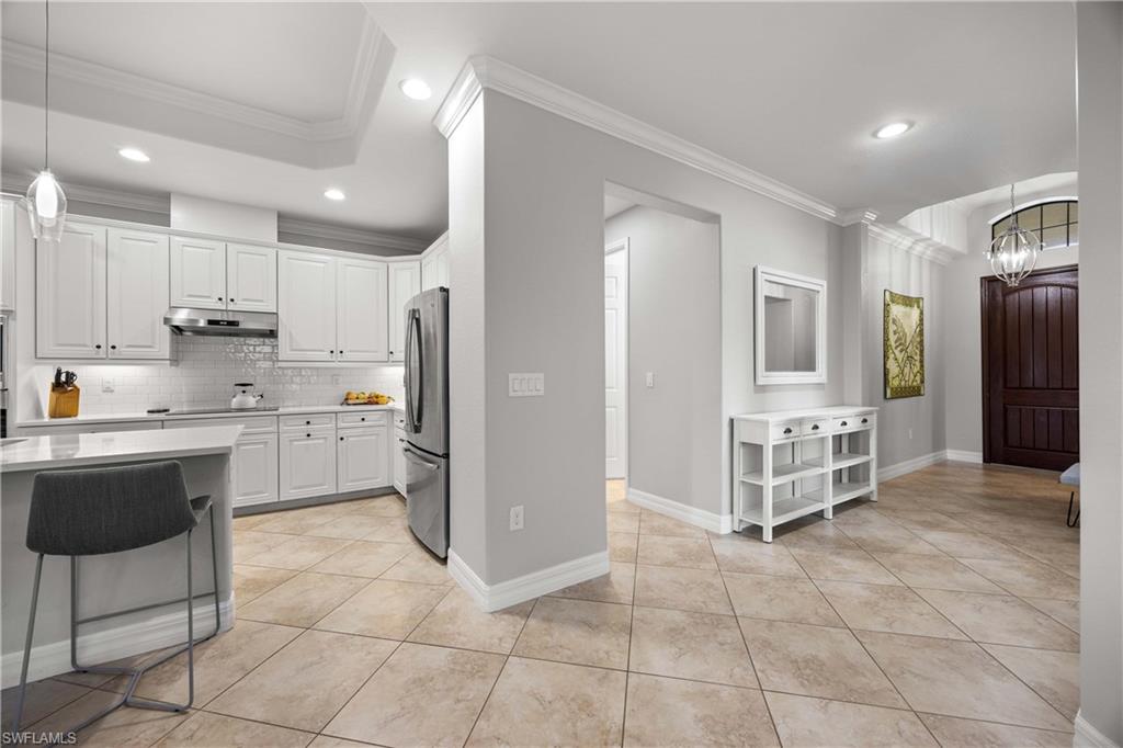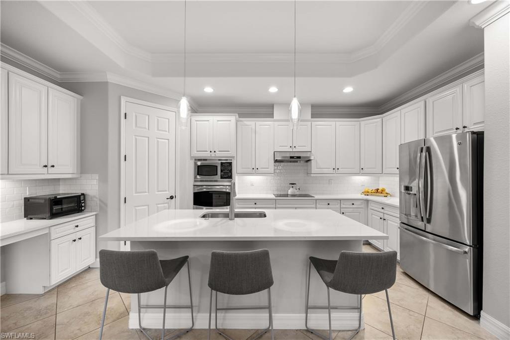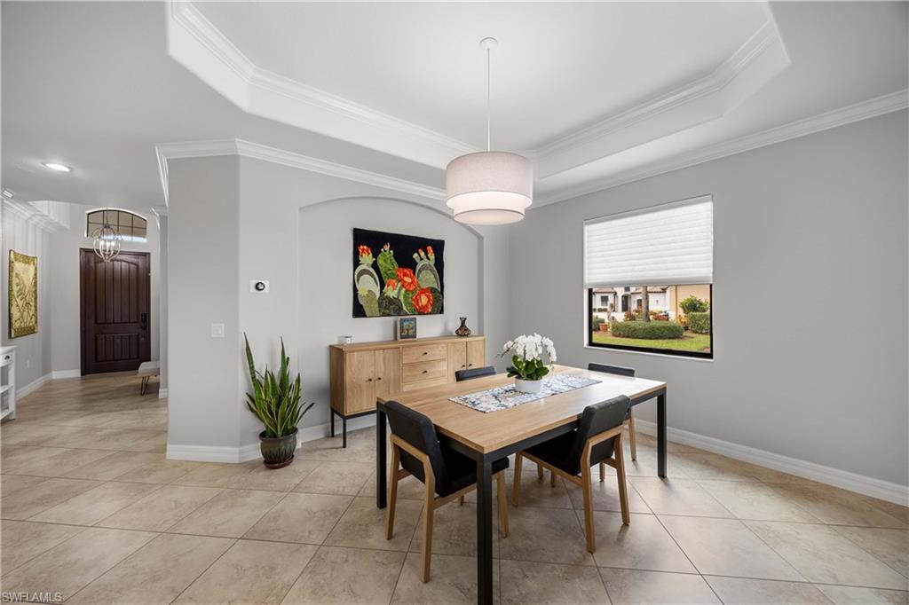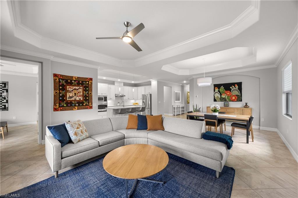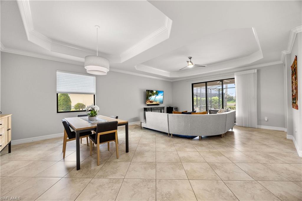 Welcome to this beautifully updated Sophia model in the highly sought-after community of Treviso Bay, offering 2,035 square feet of thoughtfully designed living space and a deeded TPC golf membership. This 3-bedroom + den/office, 3-bath single-family home blends comfort, style, and resort living. The open-concept floor plan features tile flooring throughout with luxury vinyl in the den, creating a seamless and modern feel. The kitchen has been tastefully refreshed with painted cabinetry, new quartz countertops, a new induction cooktop and hood, and flows effortlessly into the main living and dining areasu2014perfect for entertaining. Each bathroom has been upgraded with painted cabinets, new quartz counters and new Toto toilets. A new hot water heater (January 2026) adds peace of mind. Step outside to your private oasis where the saltwater-converted pool and spa overlook a tranquil lake view. The lanai features new screens and a fully equipped outdoor kitchen with a new 36u201d grill, ideal for enjoying Southwest Floridau2019s indoor-outdoor lifestyle year-round. Additional highlights include a 2-car garage and all the luxury amenities Treviso Bay is known for, including championship TPC golf, resort-style pool, fitness center, tennis, dining, and more. Experience the best of Naples living in this move-in-ready golf home.