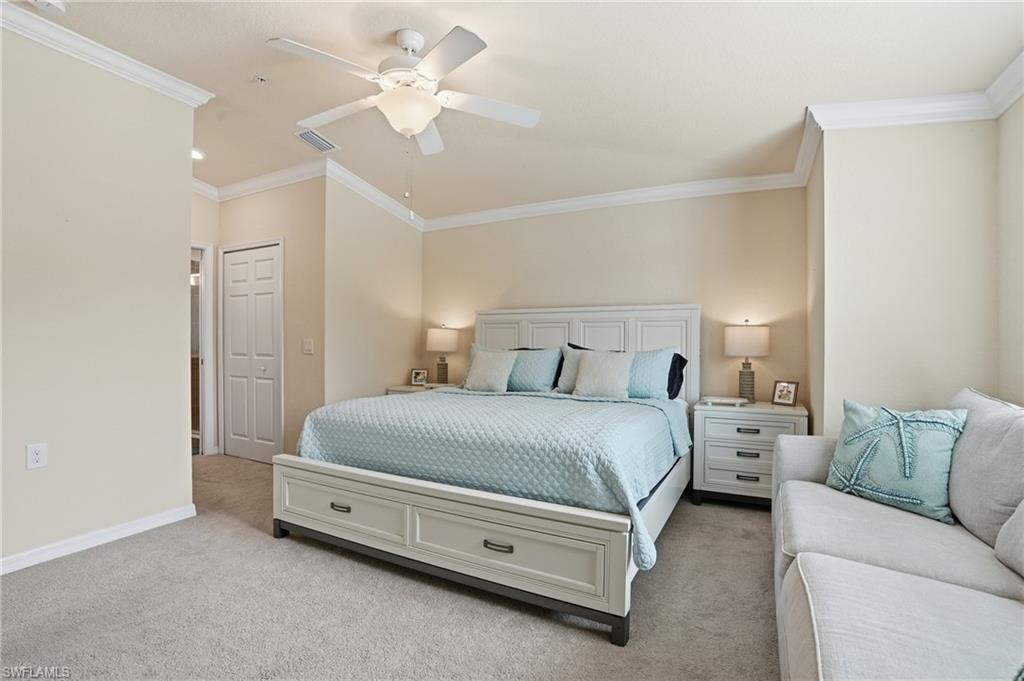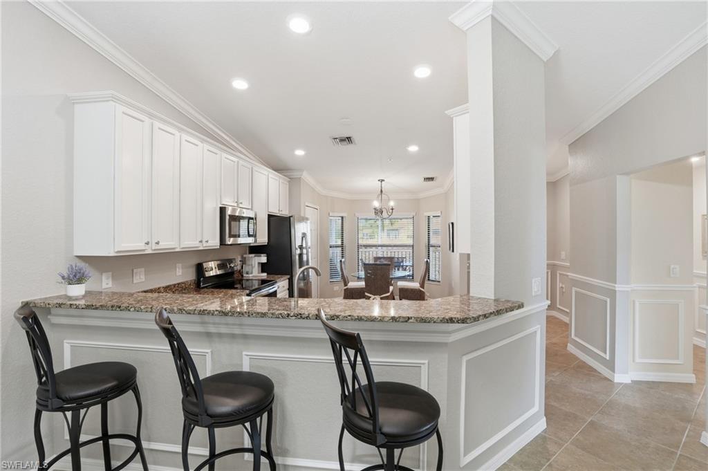 Enjoy resort-style living in the highly sought-after community of Treviso Bay. This light-filled 2-bedroom plus den end unit offers beautiful lake views and includes a one-car detached garage. Interior features include white cabinetry, crown and decorative molding, impact windows and sliders, wine cooler, tile and carpet flooring, AC one year old, and a flexible den ideal for a home office or guest space.Designed for indoor-outdoor living, the home offers two lanaisu2014one at the front and one at the rearu2014perfect for enjoying morning coffee with sunrise views or relaxing in the evening while taking in peaceful sunsets.Treviso Bay is known for its exceptional amenities, including a resort-style pool with poolside bar and restaurant, a full-service fitness center with attendant and group fitness classes, an active pickleball program, tennis courts with pro shop, and a full-service spa. The elegant clubhouse features fine dining options and a variety of member-themed social events. Residents also enjoy the new Flagship Bar overlooking the stunning TPC Treviso Bay golf course. Golf membership is not included with this condominium; however, off-season golf is available from May through October for a nominal fee.Surrounded by preserves, lakes, and the Rookery Preserve, the community offers miles of scenic walking and biking paths, creating a serene and nature-filled setting. Ideally located just five miles from Naplesu2019 pristine beaches, with convenient access to the shopping, dining, and entertainment of 5th Avenue South and 3rd Street South, this home offers the perfect blend of luxury, lifestyle, and location.