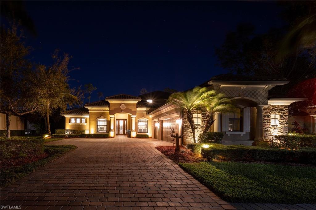 A true 5 bedroom (plus den)/3.5 bath/3 car garage 2-story home on Firenze Circle in the highly desirable community of Treviso Bay. This property is deeded with a TPC GOLF MEMBERSHIP! No waitlist to join! The Napoli Grande model encompasses over 3,100 square feet and features 2 guest bedrooms, a full bath, sitting area and wet bar with undercounter refrigerator on the 2nd level. The first floor offers a large, spacious primary suite complete with a walk-in closet, en suite bath with 2 vanities/sinks & separate tub and walk-in shower, and a door that opens up onto the expansive lanai. Additionally on the first level - which includes enlarged tiles set diagonally throughout - there are 2 guest bedrooms, a full AND half bath and an office/den (that can be converted to a SIXTH BEDROOM). The Sellers have also added a beverage/wet bar with an undercounter wine refrigerator, beverage refrigerator and icemaker. The kitchen is complete with a natural gas cooktop and GE Monogram appliances. Custom lighting throughout. The true Florida lifestyle is experienced outside the rear sliders where the tranquil lanai provides a sanctuary offering a natural gas-heated in-ground pool/spa, summer kitchen/built in grill and custom lighting that accentuates the natural beauty. The coveted TPC golf membership offers the owner the opportunity to be a full golf member at one of the finest layouts in Southwest Florida. Aside from the world-class golf experience, Treviso Bay has unmatched amenities, featuring: on-site spa/salon, fitness center with instructors and daily classes, 8 tennis courts, resort style pool with a recently renovated poolside restaurant/tiki bar with daily happy hour specials, bocce, pickleball, and SO MUCH MORE. The 24-hour guarded, gated community is located just 5 miles from 5th Ave restaurants, shopping and the Gulf of Mexico. The original owners of this spectacular property have never rented the house and have used it sparingly since purchasing it in 2014. Don't miss the opportunity to call this ESTATE property `HOME`.
