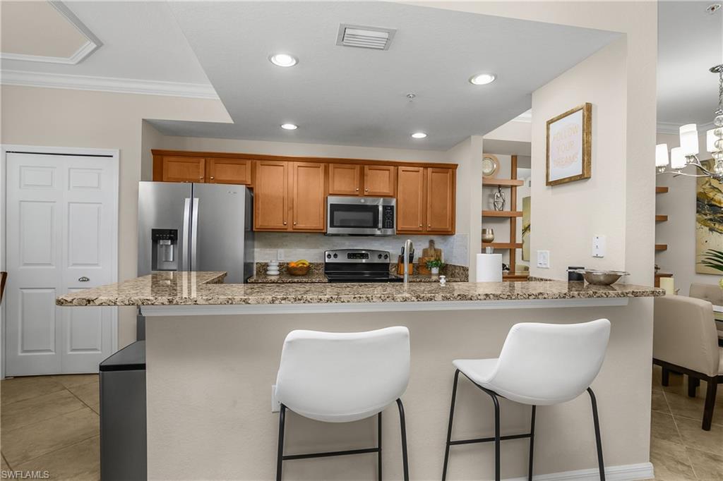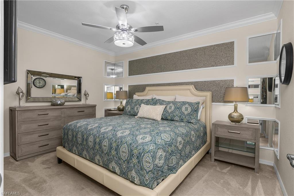 Welcome to 9815 Giaveno Ct #1213 in Treviso Bay, one of Naplesu2019 most sought-after gated, resort-style communities featuring bundled TPC golf. This beautifully appointed first-floor condo with a full TPC golf membership offers 2 bedrooms, 2 bathrooms, and is being offered furnished, creating a true move-in-ready opportunity in the heart of Southwest Florida.From the back lanai with upgraded no-see-um screens, enjoy tranquil long-lake and preserve views with stunning sunset skies, abundant wildlife, and a peaceful backdrop that feels both private and expansive u2014 enhanced with a convenient roll-down screen for added comfort and shade. The setting delivers the serenity buyers search for when looking for waterfront golf condos in Naples, Florida.As one of the original model units, this home showcases elevated finishes and custom details throughout. Rich woodwork and decorative wall designs add warmth and character, while thoughtfully placed mirrored features enhance natural light and create a bright, open feel. Built-in cabinetry in the dining area adds elegance and functional storage, making the space ideal for entertaining. Upgraded lighting fixtures and fans throughout the residence elevate the ambiance in every room, and custom drapes and window coverings provide a polished, cohesive look while enhancing privacy and comfort. The primary suite features a stylish fandelier, blending beauty and function in a relaxing retreat.The open-concept floor plan offers seamless indoor-outdoor living, allowing you to fully enjoy the lake and preserve views that make this property so special from your living room, kitchen, and dining areas.Treviso Bay is renowned for its award-winning TPC golf course, part of the PGA TPC Network and Passport program, offering championship-level play in a private, bundled membership setting. Residents enjoy a spectacular amenity package, including a resort-style lagoon pool with waterfalls, poolside restaurant and bar, full-service spa, state-of-the-art fitness center, aerobics studio, Har-Tru tennis courts, pickleball courts, bocce, and scenic walking and biking trails. The grand clubhouse offers fine and casual dining, social gatherings, and an active calendar of events that supports a vibrant Naples lifestyle year-round.Located just minutes from downtown Naples, Fifth Avenue South, Marco Island, and the white-sand Gulf beaches, Treviso Bay offers luxury living with unmatched convenience.For buyers searching for a first-floor condo with TPC golf membership, sunset exposure, lake and preserve views, and high-end upgrades in Naples, FL, 9815 Giaveno Ct #1213 is an exceptional opportunity to experience resort-style living at its finest.
