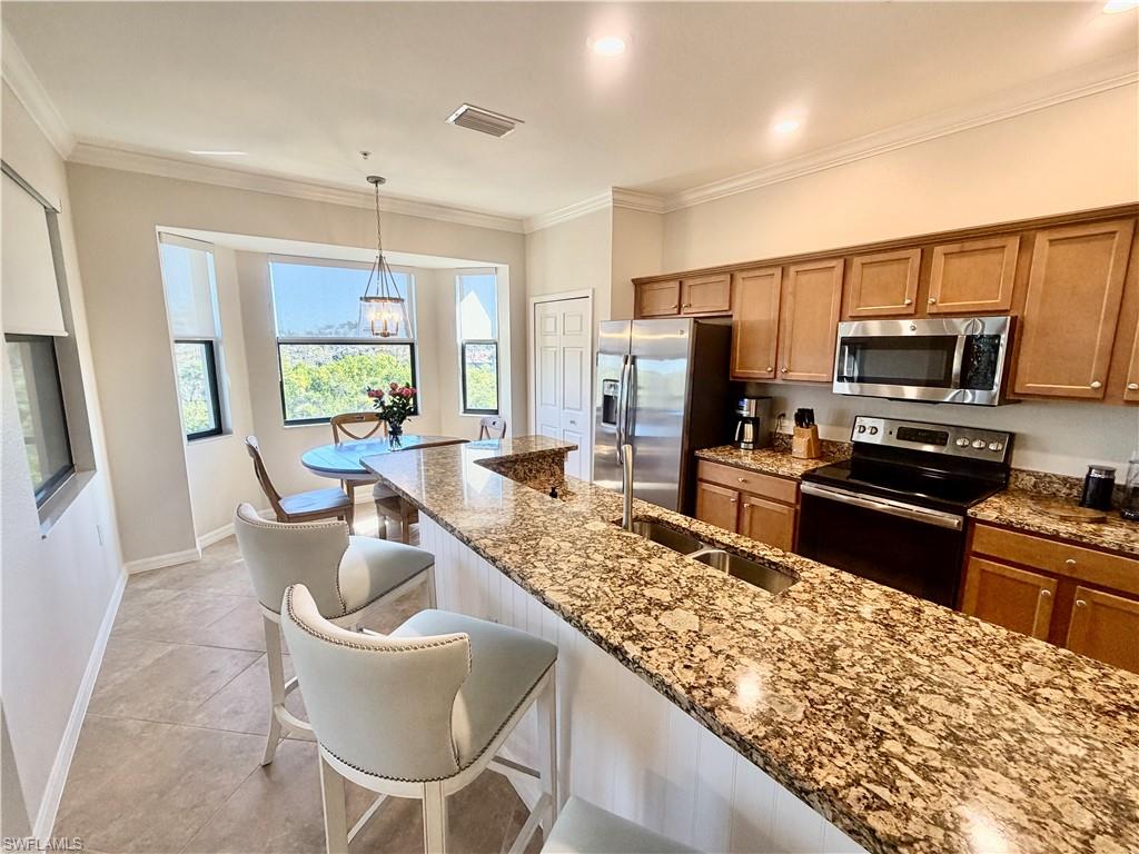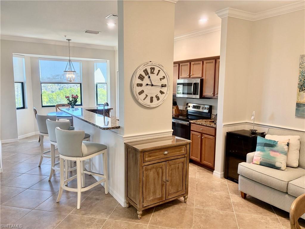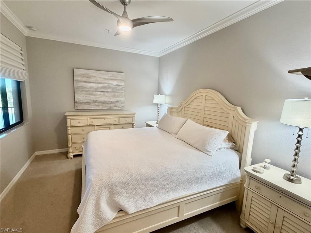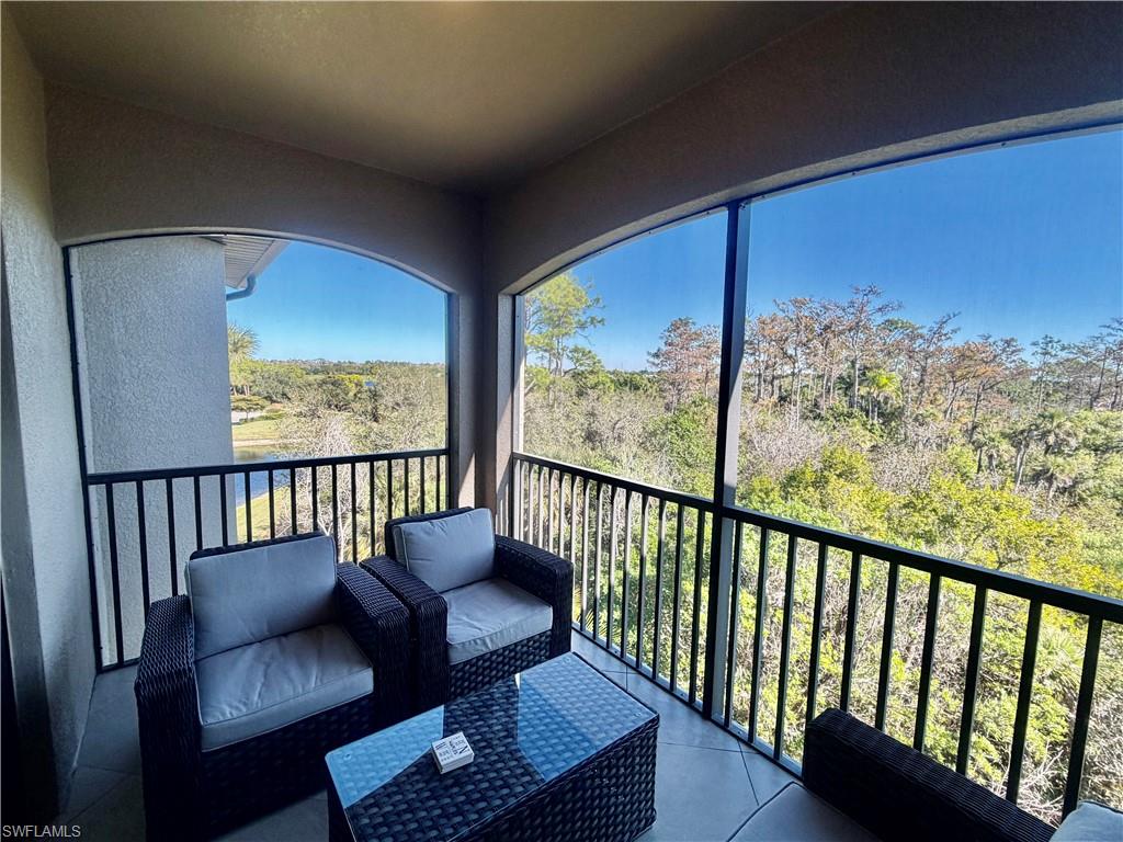 ***TPC BUNDLED GOLF INCLUDED*** Welcome to this beautifully maintained quiet, top 4th-floor condo in the highly sought-after Treviso Bay Golf & Country Club. Built in 2017 this is the newest building in Giaveno. This 2-bedroom, 2-bath residence offers 1,232 square feet of air-conditioned living space with a bright east-facing exposure that fills the home with morning sunlight. Current owners are in residence 3 months per year and it has never been rented. Freshly painted the condo features tile flooring in the main living areas and carpeted bedrooms, creating a light, coastal feel throughout. Enjoy peaceful outdoor living from the screened lanai (updated no-see-um screens & ceramic tile), perfect for relaxing/entertaining. The unit is move-in ready and in pristine condition. Updates include (approximately 40K): Window coverings; Premium queen bed, platform and upholstered head board, queen mattress in guest room; Sofas, 2 purchased from William E. Smith, June 2025; Lanai: sofa plus 2 arm chairs and coffee table; TV's mounted in 3 rooms; Wine Fridge; Replaced a/c coils; a/c serviced every 6 months; Replaced hot water tank 2025; Replaced plastic valves to metal as per condominium specifications 2025; Lanai tiled; Replaced screens in Lanai (no-see-ums); Paint of entire condo; Toilets replaced (2) and faucets. Ideally located across from one of the communityu2019s six pools and just a short walk to the Country Club, this condo is perfect for full-time living, seasonal enjoyment, or investment. Treviso Bay is a gated, amenity-rich community offering bundled TPC golf, 6 pools, clubhouse, fitness center, tennis, pickleball, basketball, bocce, massages, manicure, pedicure, and beauty salon on-site dining, and more. Just 4.5 miles from downtown Naples and 5 miles from the Gulf beaches, shopping, and dining, this property also presents a great rental opportunity when not in use.