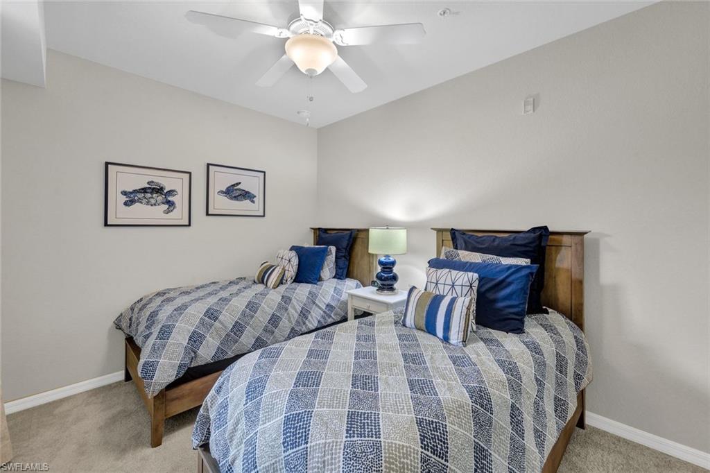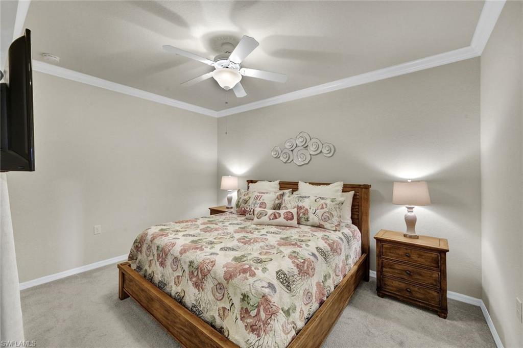GOLF PRIVILEGES AVAILABLE - The views from this two-bedroom Giaveno condo in Treviso Bay feature stunning sunsets over a peaceful wooded preserve and a lake. The amenities of this community are unmatched. During the off-season, renters have full club privileges including golf. Renters will appreciate a full-service pool area with a bar and grill as well as pool-side chair ordering capabilities. Tennis, pickleball, and golf are at the forefront of club sports. Follow up a day playing with dinner and drinks the the clubhouse. Giaveno has a community pool for condo residents. The unit offers a storage unit with beach chairs and an umbrella. Come enjoy!
