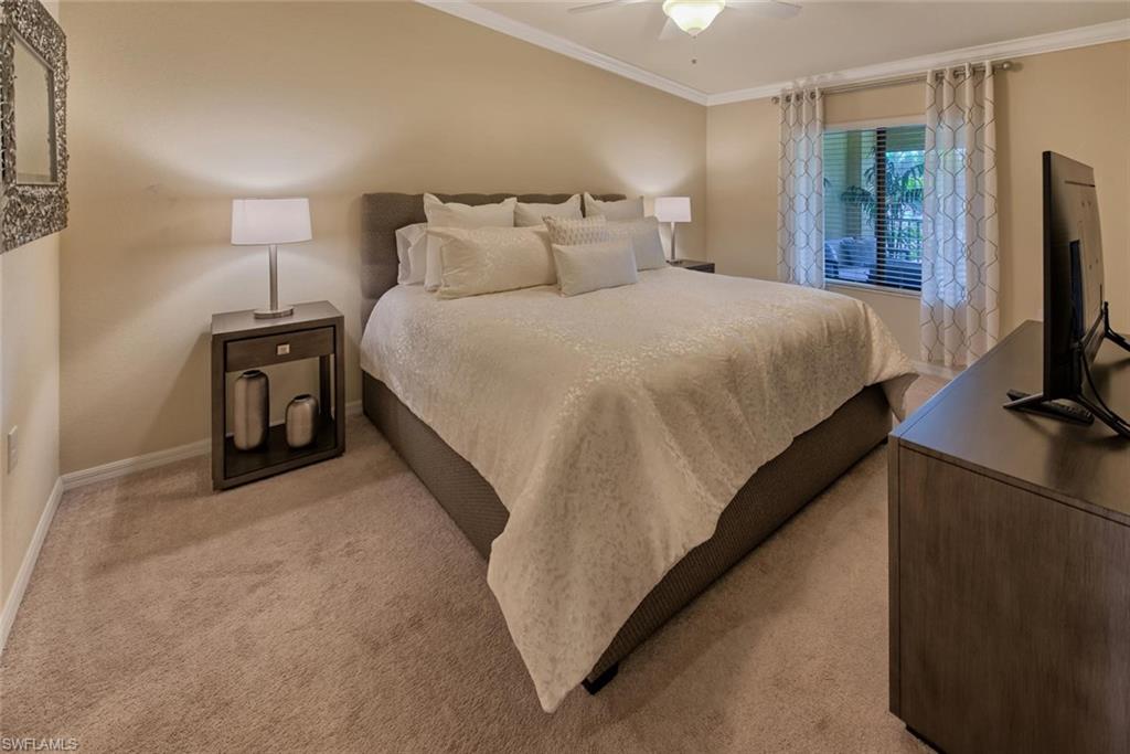 Available for December or April at the shoulder rate of $6000/month or off season May through Nov at $3000/month. Turnkey 2BR/2BA+Den second-floor veranda in Treviso Bay! One car detached garage, lake view, UPGRADES GALORE! This stunning unit in Treviso Bay features a social membership allowing tenants access to the Avellino satellite pool, resort-style lagoon pool with lap lanes, two onsite restaurants, state-of-the-art fitness center, spa, salon, tennis courts, bocce ball courts, pickleball courts, onsite fitness instructors, locker rooms, cabanas, and more!