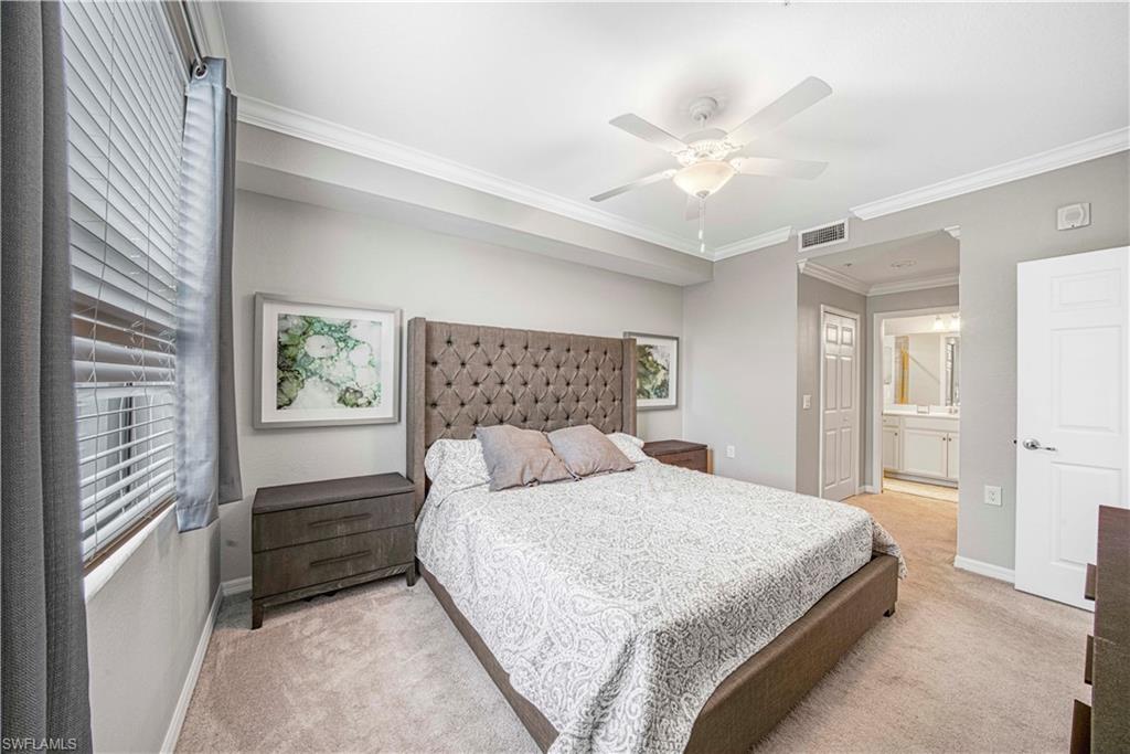 This elegantly appointed condominium provides a serene retreat with a panoramic view of the lake. Equipped with stainless steel appliances and stone countertops, the modern kitchen is designed for culinary excellence. The unit features a covered and reserved car port, ensuring convenience for tenants.Resident tenants gain access to a comprehensive array of resort-style amenities located in Treviso Bay. These amenities include two clubhouses, restaurants, bars, a spacious resort-style pool, a lap pool, a state-of-the-art fitness center staffed by personal trainers, an aerobics room, a spa, walking and biking paths, tennis courts, basketball courts, and a bocce ball court. Additionally, TPC Golf Course is available for public play at competitive rates.For those seeking a departure from the resort-style lifestyle, Naples and Marco Island offer dining and beach destinations within a short distance.