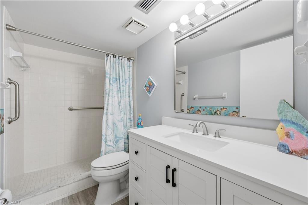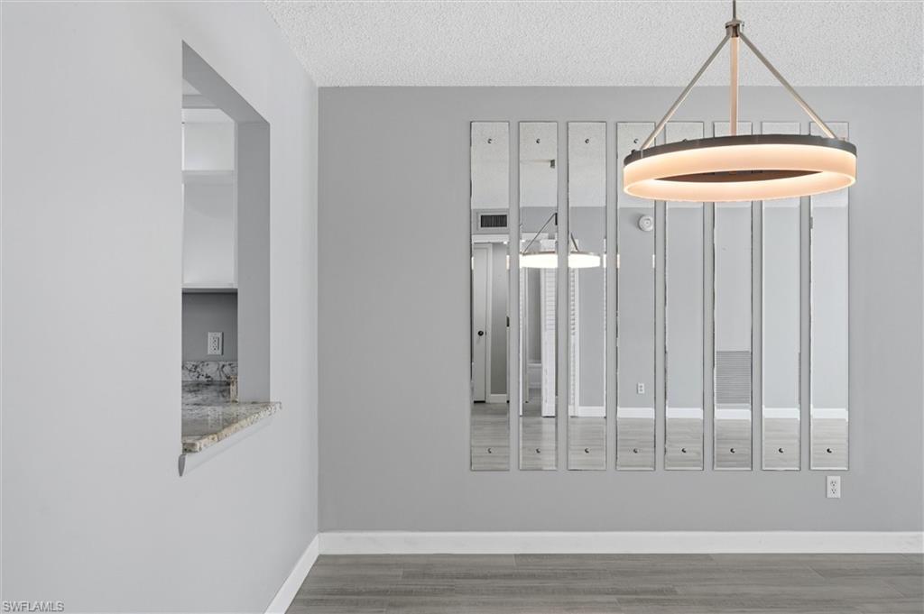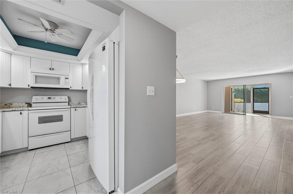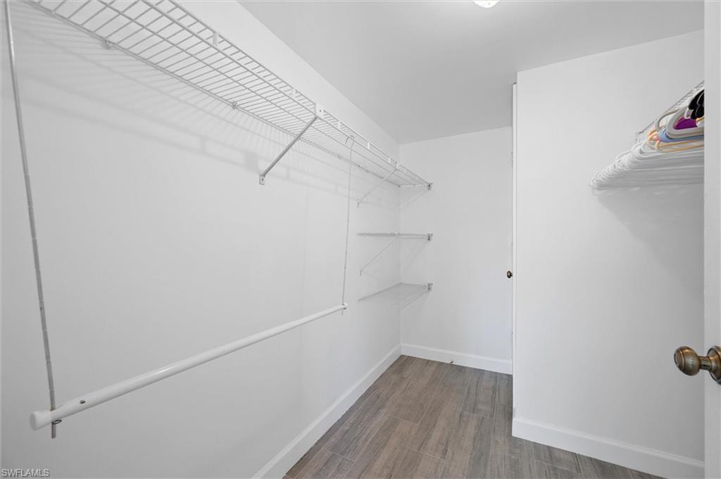 Wonderful south central Naples location at Augusta Court. This complex sits back off of the road and overlooks green space from the lanai. The carport and covered storage are between the condo and the road. This 2 bedroom condo is beautifully updated with new kitchen, updated baths, wood look tile flooring, raised kitchen ceiling, and granite counters. Freshly painted with soft beachy colors. Another great feature is hurricane windows. Super convenient first floor location (did not flood) with easy access from covered parking to front door. Low maintenance fees with nice amenities in a friendly, residential complex