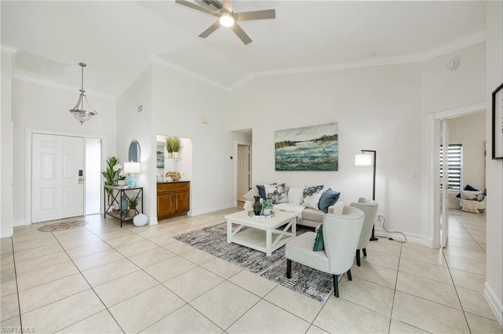Spacious, bright, and move-in ready, this 3-bedroom villa in Tanglewood at Lely Country Club offers the comfortable Naples lifestyle buyers are seeking. With nearly 1,900 square feet under air, the thoughtfully designed floor plan features soaring ceilings, an open great-room layout, and an abundance of natural light that creates an airy, welcoming feel throughout. The kitchen opens seamlessly to the main living and dining areas, complete with generous counter space and bar seating which is perfect for everyday living or entertaining. A large enclosed Florida room extends the living space and offers flexibility for a sitting area, home office, or hobby room overlooking the landscaped surroundings.The split-bedroom design offers privacy for guests, while the spacious primary suite includes a walk-in closet and ensuite bath. Tanglewood is a well-established community within Lely Country Club offering a community pool and a prime location just minutes from Downtown Naples, shopping, dining, and Gulf beaches. Whether you are looking for a full-time residence or seasonal retreat, this villa delivers exceptional space, value, and location.