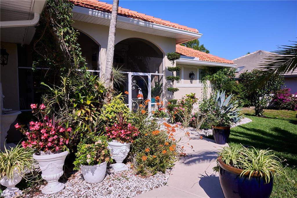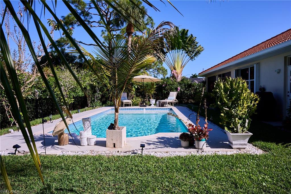 This rarely available, custom-built residence offers three bedrooms, three full bathrooms, and a spacious three-car garage, all set on a quiet street surrounded by estate-sized homes.The property truly feels like a private Florida oasis, featuring an incredible variety of tropical plants, blooming flowers, and fruit trees that create a lush, serene environment. The outdoor space is enhanced by a newer salt water pool, mature landscaping for added privacy, and an automatic mosquito spray systemu2014perfect for enjoying outdoor living year-round.The home has been meticulously cared for and thoughtfully updated. Recent improvements include a new roof (2025), air handler (2023), brand-new garage opener system (2026), and a full security system for added peace of mind (2026). The interior has been freshly painted and is tastefully decorated, offering a move-in-ready feel. Additionally, the home is equipped with a new whole-house reverse osmosis water system, providing high-quality water throughout. The kitchen features updated cabinetry with convenient pull-out drawers and granite countertops. A versatile den with a charming window seat can easily function as a cozy breakfast nook or flex space. Each bedroom includes its own bathroom, with one serving as a convenient pool bath. The generously sized front and backyard spaces provide plenty of room for entertaining or relaxing, complemented by front and back storm protection and numerous additional features throughout the home. Located within the desirable Lely Country Club community with low HOA fees, this home is just minutes from the beaches of Naples and Marco Island, as well as downtown Naples dining and shopping. Nearby amenities include golf at Royal Palm Golf Club, easy access to I-75, the Botanical Garden, pickleball courts, and local parks.