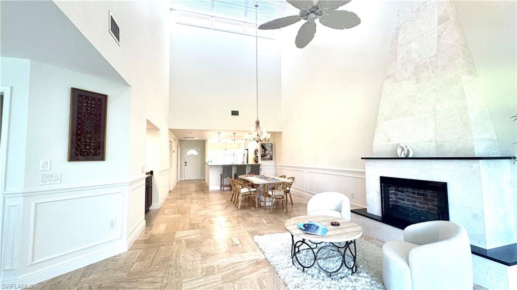 AVAILABLE SEASON 2026 ! GOLF TRANSFER AVAILABLE. Spend your winter in this wonderful luxury villa in Lely, Naples. 2BR plus den with a 2 car garage. This light and bright villa has been recently updated with modern finishes. Walk right out the back lanai and take 20 steps to the heated community pool. The villa sits overlooking the 3rd hole of the Royal Palm Golf Club. The 2 car garage opens to the courtyard and main entrance. In home washer and dryer. All utilities included. Only a 9 minute drive to the US OPEN Pickleball Academy. Minutes from Naples' white sand beaches, downtown Naples, shopping and restaurants. Available off season months as well. Small pet may be allowed with owner approval and a fee. King bed in primary BR full size Murphy bed in guest BR. Rate is $4200/month with a 90 day minimum stay . $4800/month for a 60 day stay. Could be rented annually at $3350/month