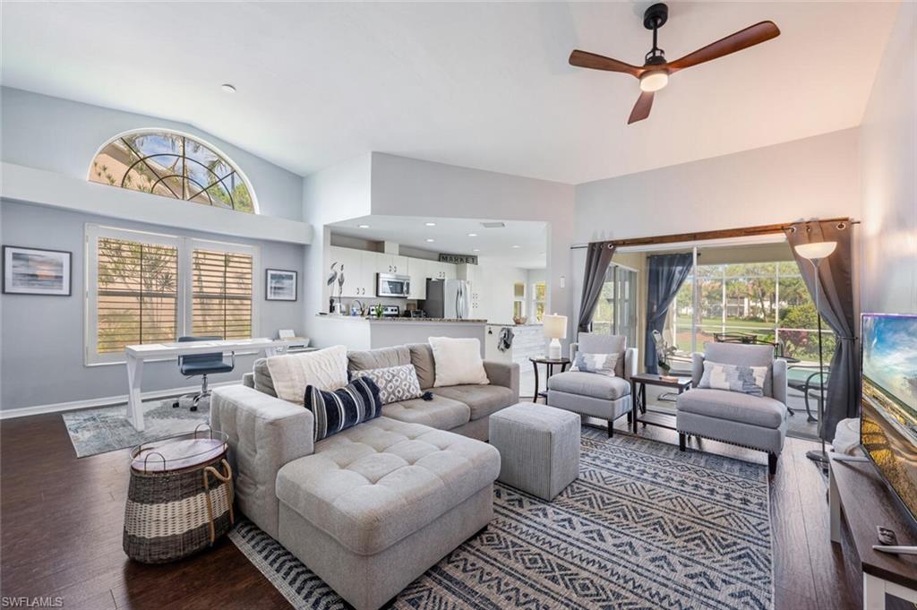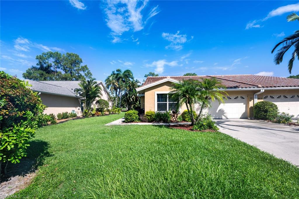 Turnkey furnished villa pool home with spectacular golf course and sunset views in desirable Lely Golf Estates. This spacious villa has over 1,600 sq ft with volume ceilings, 3 bedrooms, 2 bathrooms & 2 car garage. The home features an updated kitchen with granite counters, a prep island and stainless steel appliances. The updated primary bath has an expansive shower with a frameless glass enclosure. Enjoy year round outdoor living pool side. Minutes from Downtown Naples, 5th Ave & 3rd St shopping and dining, beaches and more!