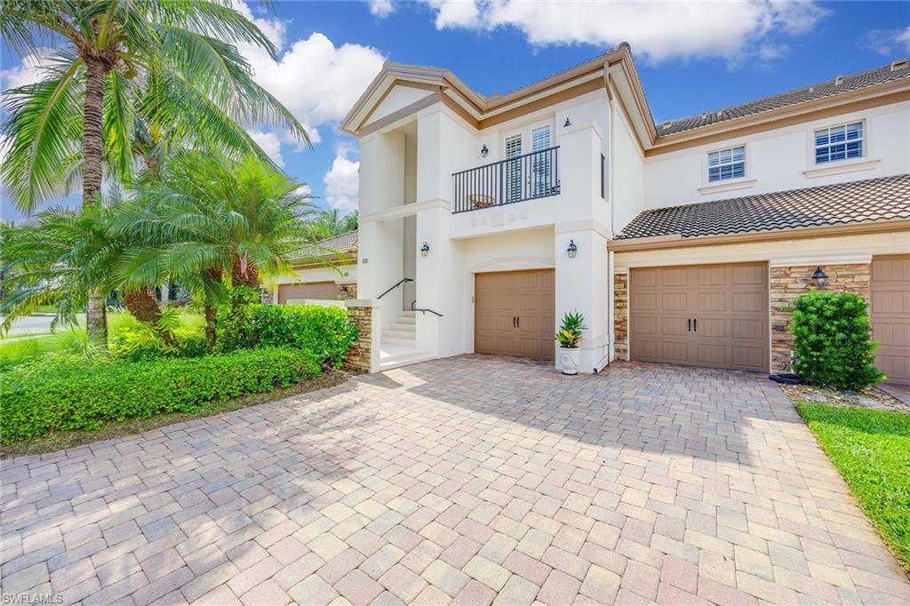 Welcome to Players Cove within the private, gated community of Lely Resort. This meticulously maintained first-floor end residence offers three bedrooms, two full baths and one half bath, with a spacious layout and immediate access to community amenities. Near The Players Club and Spa, this home provides convenient access to resort-style pools, tennis, pickleball, fitness facilities and on-site dining. Lely Resort is home to three championship 18-hole golf courses, including the Mustang and Flamingo Island courses, as well as the Classics Country Club. Interior features include impact-resistant windows and doors, Storm Smart roll-down shutters on the lanai and recently replaced air HVAC system and hot water tank. Large diagonal tile flooring extends through the main living areas and baths, while the primary bedroom offers elegant hardwood. The kitchen is appointed with granite countertops, and a new stainless steel refrigerator and microwave. Additional upgrades include crown molding, detailed woodwork around windows, custom window coverings, a wet bar with wine refrigerator and custom-built closet cabinetry. The residence also features a new washer and dryer and peaceful views of rock water fountains from the lanai, offering a private outdoor setting. Residents of Players Cove enjoy mandatory membership to The Players Club and Spa, providing access to an active social calendar and extensive recreational amenities in Lely Resort.