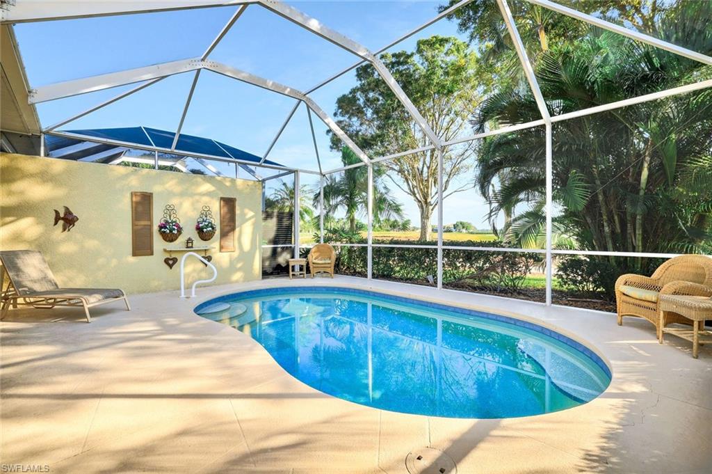 Stunning golf course views. South Facing. 2+Den Pool Home on a cul-de-sac in Calumet Reserve, a gated community within gorgeous Lely Resort. Well maintained. Attached Villa with a 2-car garage is offered Turnkey Furnished. Calumet Reserve is in gated community within in Lely Resort. The open floor plan, kitchen, dining room/family room all being connected makes this the perfect place to accommodate family & friends. Enjoy entertaining, dining, and living in this lushly landscaped community which provides a private and relaxing setting. Lely Resort offers both private and public golf courses. You also have the option of joining The Players Club which provides you access to a variety of amenities: resort-style pools, lap pools, bocce ball and Har-Tru tennis courts, spa services, casual and fine dining, social events, and a state-of-the-art fitness center with instructors and private classes. Lely Resort is a premier community just a short drive to enjoying both downtown Naples and Marco Island. This location provides access to beaches, entertainment, dining, and shopping in close proximity Fifth Avenue South Shops, Dining and Gulf Beaches !!