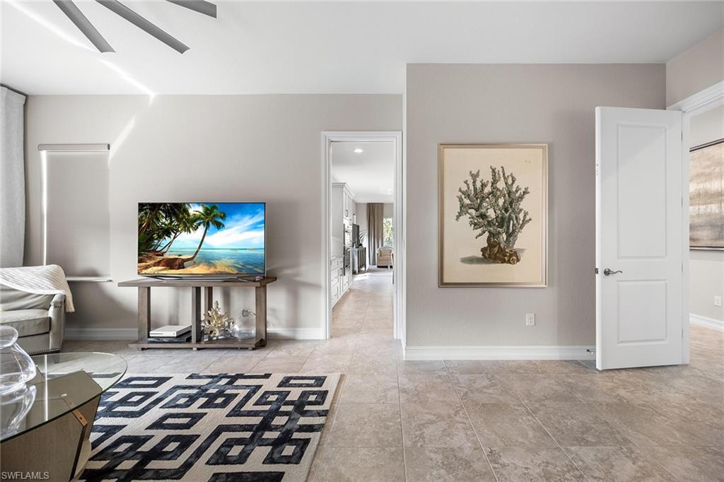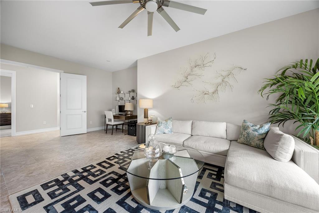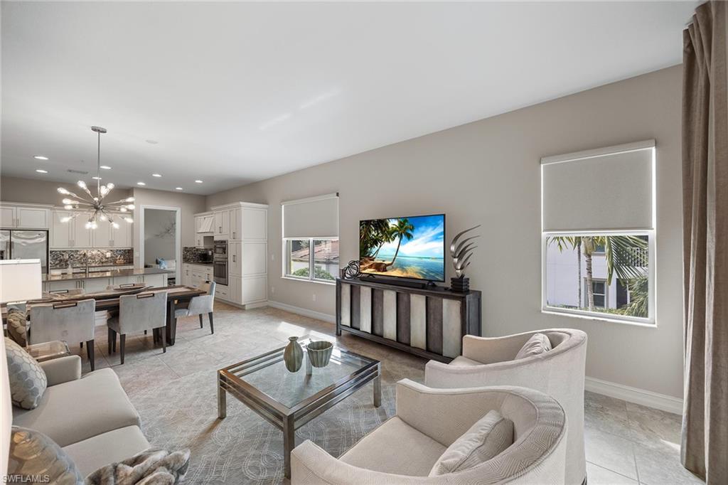 This former model home is lightly lived-in and packed with designer upgrades. It features a spacious floor plan with three large bedrooms, a den, and three and a half baths. The home boasts custom window treatments and lighting throughout, with numerous upgrades that enhance style and comfort and peace of mind of impact-resistant windows and doors. In Tasori, an exclusive neighborhood of only 56 units and is just steps from Tasori/Hawthorne clubhouse, you'll enjoy access to a large community pool, hot tub, gym and barbecue area while also benefiting from full access to the award-winning Players Club & Spa with three resort-style pools, dining, huge fitness center, tennis, pickleball, spa services and a full time activities director .
