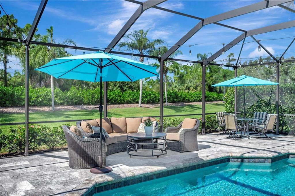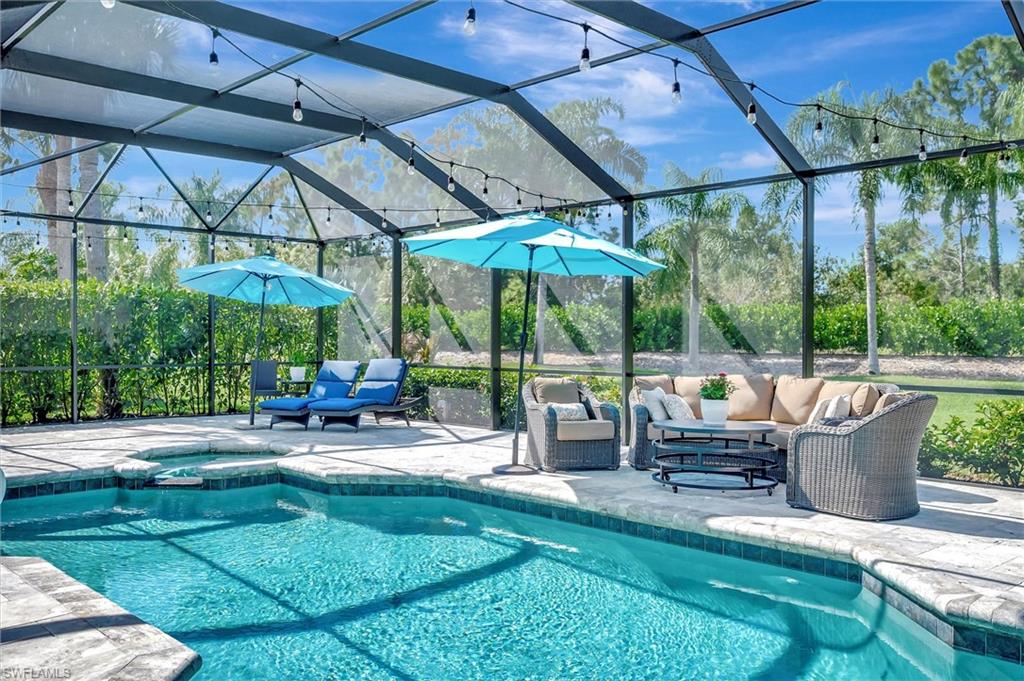 Turnkey Perfection meets Resort Luxury in Mustang Island in Lely Resort. Thisstunning 3BR+Den, 3.5BA Tilbury floor plan is move-in ready. The interior boasts amodern transformation with updated stainless appliances, quartz countertops, andupdated bathrooms. Enjoy peace of mind with an HVAC approx. 4 years old and anextended garage with an owneru2019s closet. The outdoor oasis features a massive lanaibuild-out with a renovated cage and elegant travertine paving. Relax in the saltwaterpool/spa featuring an Aqua link remote and Western exposure for iconic Florida sunsets.The spacious master suite offers a sitting area, oversized closets, and a soaking tub.As a resident, you unlock the doors to the famed, `Eight-time Club of the Year` PlayersClub & Spa. Imagine your weekends spent by the cascading 22-foot waterfall pool,enjoying drinks at the tiki hut, or challenging friends on the premier tennis and pickleballcourts. With gourmet restaurants, a state- of-the-art fitness center, a full spa, and threechampionship golf courses all at your fingertips. This home perfectly blends luxuryupgrades with a world-class resort lifestyle. Start living your best life today. Live,Laugh, and Love the Lely Lifestyle!
