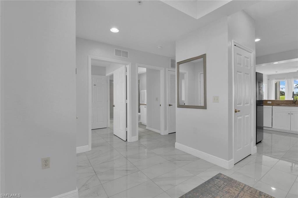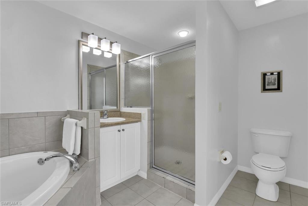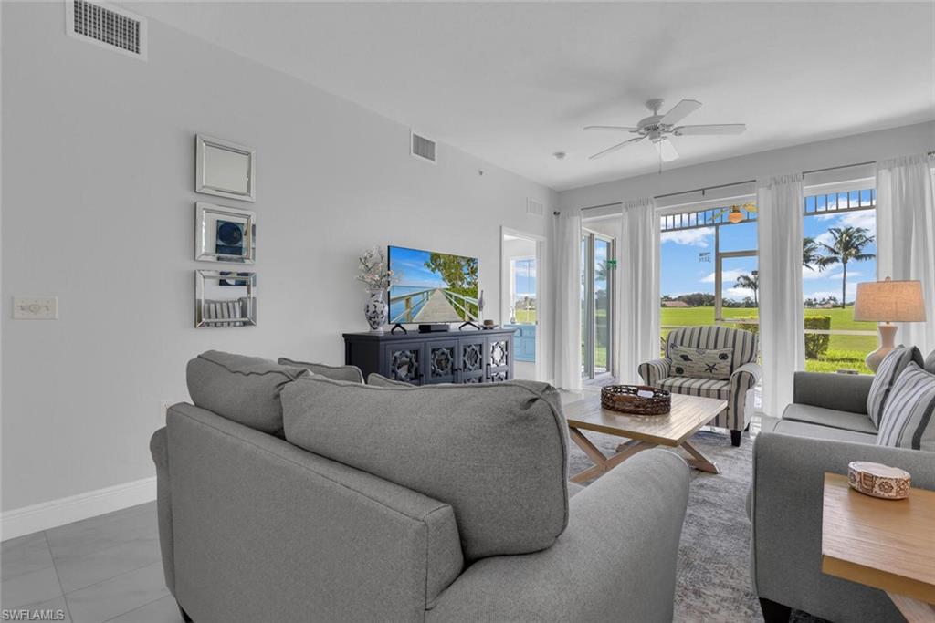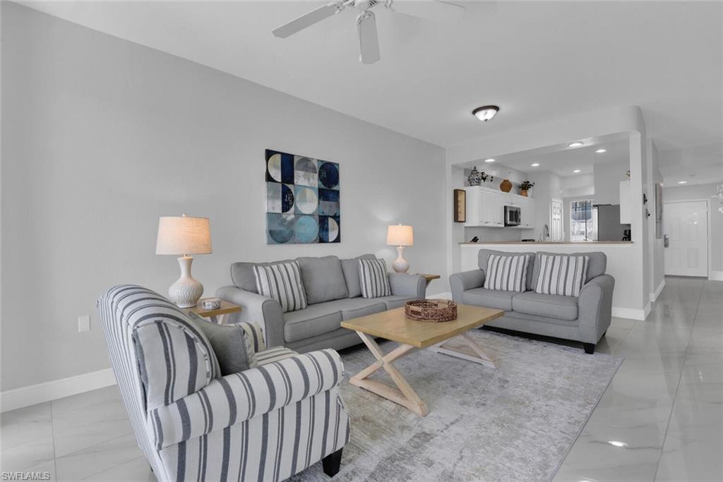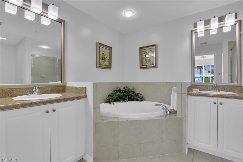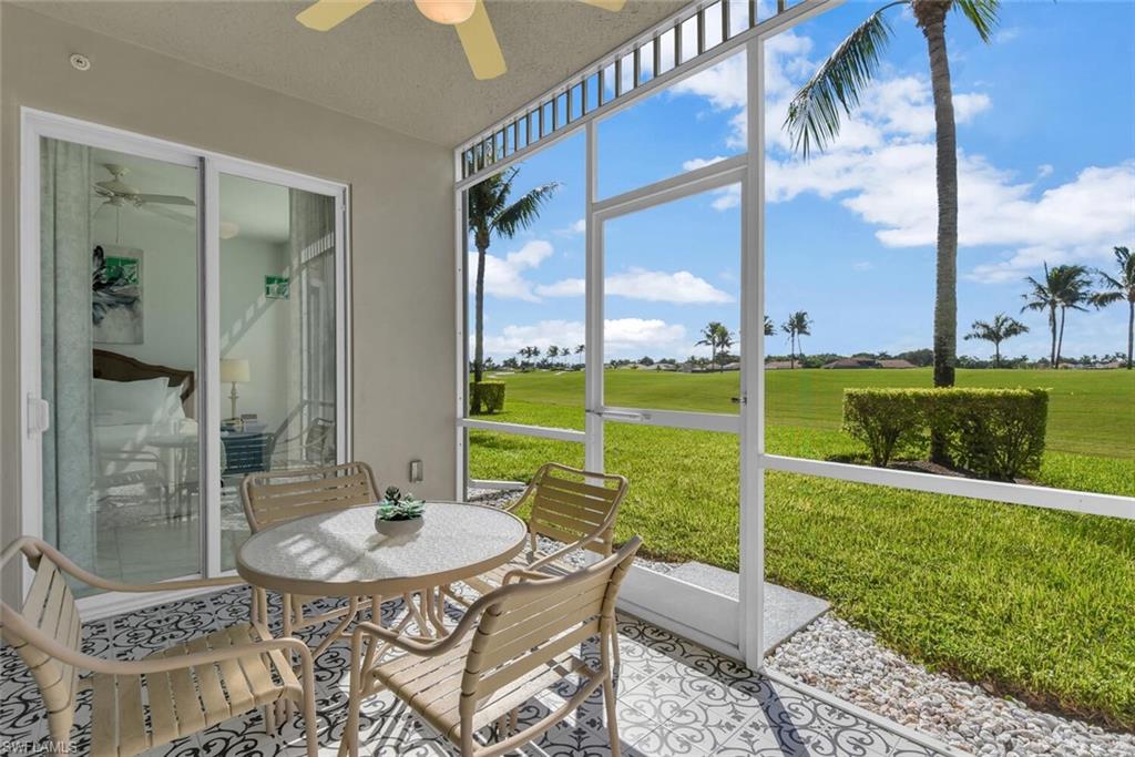 Mimosa Golf Villa is a newly updated 2 bedroom+den condo located in Lely Resort's Greenlinks community. Mimosa is unit number 514 and has beautiful east facing golf course views from the screened lanai, which has been upgraded with designer tile flooring. The interior of the condo has also been upgraded with tile flooring throughout and new contemporary living room furniture. Please note that the den of this unit has been converted to the dining room to make the living room more spacious, which includes a queen pullout sofa in the living room, so there is no den other than the study area at the entrance to the condo where the desk is located. The primary bedroom has an ensuite bath with a soaking tub and a separate shower as well as two sink vanities. A fully equipped kitchen and in-unit washer and dryer ensure you're equipped for longer term stays! Outside your door, you will find the Greenlinks community amenities - a resort style pool with barbecue area, clubhouse with fitness room, and tennis courts. Sam Snead's Tavern is walking distance so you can grab a bite to eat overlooking the beautiful golf course and practice facilities without getting in the car! Are you a golfer? You're in luck! Greenlinks Golf Villas are located next door to the clubhouse for Lely Resort's championship, 4 Star Rated Flamingo and Mustang Golf Courses and renting one of our Greenlinks units comes with perks! During peak season from October 15-May 15, the front desk will provide you vouchers for discounted golf rounds at Lely's Flamingo and Mustang Island courses, which are walking distance from your villa. During the summer season from May 15-October 15, your rental includes up to 4 complimentary golf vouchers, on us! All you pay is the cart fee. Please note that access to the owner's mailbox is not provided with this unit.