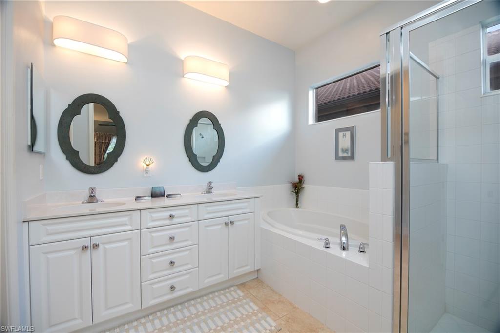 Elegance and sophistication is the way to describe this professionally designed and furnished 1965 sq. ft. 3 bedroom (including private cabana), 3 bathroom, courtyard home with heated private pool located in the prestigious gated Prestwick Place Community in Lely Resort. All rooms including bathrooms have spacious vaulted ceilings. There is plenty of natural lighting inviting you to sit back in the spacious, vaulted ceiling living room. It has a high definition, wide screen TV with blue-ray and sound system. The master bedroom has a comfortable king size bed, high definition TV and walkout access to the patio. What a nice place to enjoy a cup of coffee in the morning watching golf from the sidelines. It has a walk-in closet The bathroom is gorgeously decorated and has a comfortable garden tub. A screened patio/lanai makes a great place to read a book while watching the golfers stroll by. It overlooks the fifth hole of the Mustang Golf Course which was designed by Lee Trevino. It is decorated with twelve lakes and has been rated 4 stars by Golf Digest Magazine.