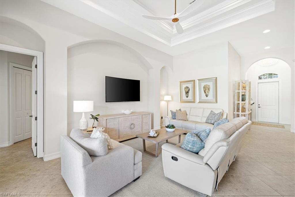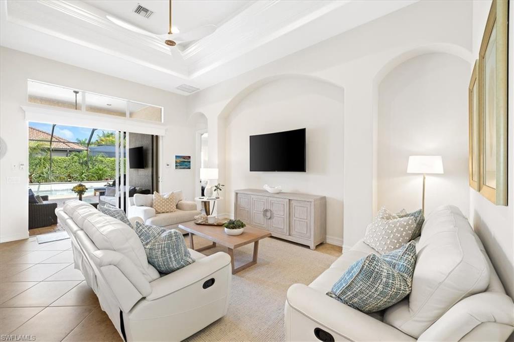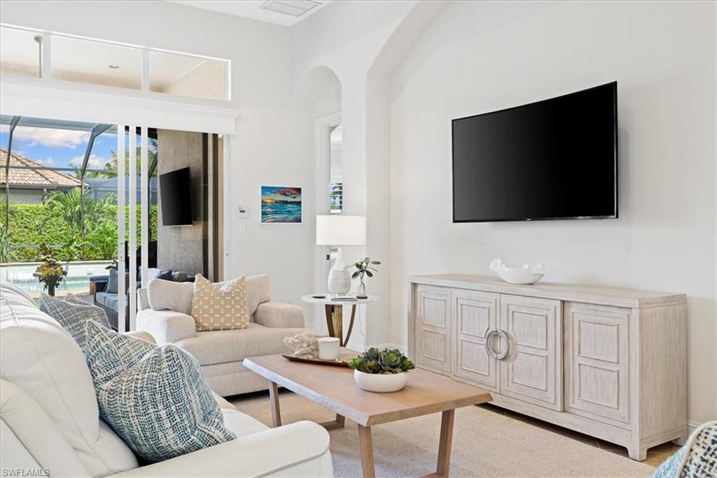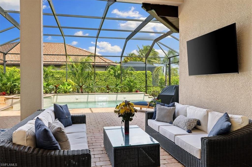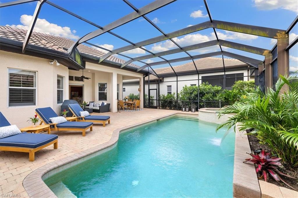 Incredible outdoor Oasis with pool, hot tub, TV, and plenty of seating in a Tropical paradise. Beautifully updated home in Ashton Place at Lely Resort with expansive lanai. This house has it all! The home features 3 bedrooms plus den and two full bathrooms. The massive private lanai includes a pool and spa. A newly updated and remodeled kitchen has it all and is a cooks dream with new quartz countertops, cabinets, and appliances. This home is offered Turnkey and also includes Players Club and spa access. Upon membership transfer, all vacationers will have access to the amenity rich Players Club and Spa featuring a full-service spa, Resort-Style Pool, and Lap/Fitness Pool, Tiki bar and Grill w/Poolside service, Fitness center w/Steam room, Dog Park, Har-Tru Tennis courts, Pickleball, Basketball, & Bocce Ball. Lely Resort offers 2 public golf courses & dining at the infamous Sam Snead Tavern. The prestigious community at Ashton Place is located only 5 min to Shopping Plazas and Restaurants, 15 minutes to Downtown 5th Ave & Naples Pier, 25 minutes to Marco Island beaches, & only 30 minutes to the Mercato.