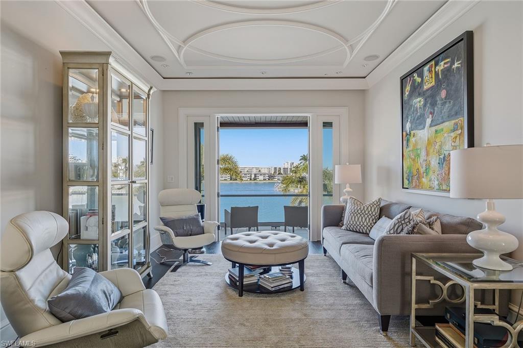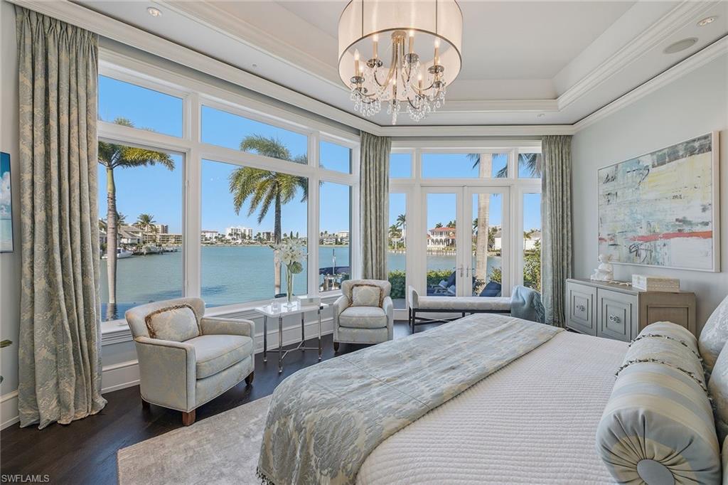 From the moment the front door opens, the bay becomes the focal point. Built by renowned BCB Homes, this custom estate was conceived to showcase the waterfront at every turn while delivering a level of detail and finish expected by the discerning buyer. The home unfolds through a thoughtful balance of formal and casual spaces, each designed to serve a purpose while maintaining visual continuity with the bay. Formal living and dining rooms create an elegant framework for entertaining, while everyday living naturally gravitates toward the family room, where expansive glass captures panoramic water views throughout the day. At center of the residence, the kitchen functions as a gathering space and a showpiece. Dual islands provide scale and flow, while marble countertops and professional appliances support serious cooking and entertaining. The 60-inch Wolf gas French plate range is not simply a feature but a statement, underscoring the homeu2019s commitment to performance and design. Nearby, a dedicated bar and climate-controlled wine room anchor the home as a setting for evenings that linger. Inspired by coastal Europe, the homeu2019s outdoor areas are anchored by an infinity-edge pool and spa that visually merge with the bay beyond. Covered and open-air spaces are layered to accommodate every part of the day, from shaded afternoons on the lanai to evenings around the summer kitchen and open sitting areas. The custom 90-foot dock extends the homeu2019s lifestyle onto the water. Designed to blend naturally with its surroundings, it is equipped with a 16,000-pound lift and floating dock platform, ready to support aquatic adventures. The first-floor primary suite occupies a dedicated wing of the home with a bedroom positioned directly on the bay, offering sweeping water views upon waking and retiring. Dual walk-in closets and a marble-clad bath evoke the best European spas, while a secluded sitting room or office provides a quiet place to work or reflect. The first floor also features a beautifully finished billiards room or fifth bedroom, complete with its bath, allowing the home to adapt effortlessly. The second floor, with its dedicated elevator, features three beautifully appointed guest suites, each with a private en-suite bath. A central social room with a morning bar creates a natural gathering point for guests, reinforcing the homeu2019s sense of ease and hospitality. The second-floor balcony offers expansive bay views, while the rooftop terrace provides an even more commanding perspective. With a dedicated fireplace and open vistas across the water, this space becomes a destination for sunsets, evening conversations and quiet moments above it all. This Moorings bayfront residence is not simply a home but a setting for a life shaped by water, light and thoughtful design.