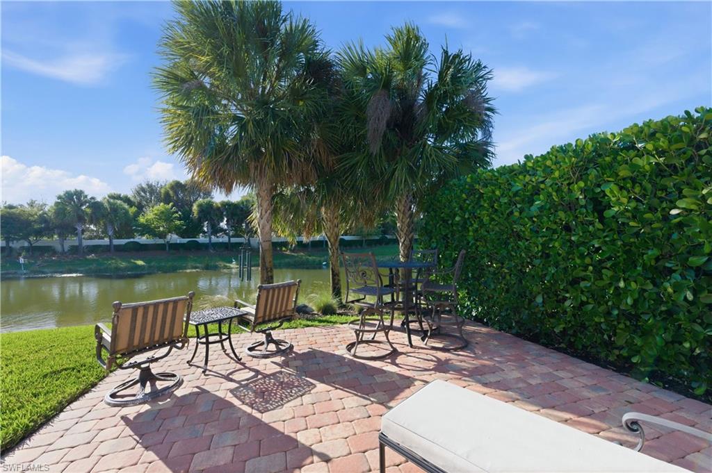 WATERFRONT & JUST LISTED TODAY in gated Avery square.. Perfectly situated on a premium lot on the highly favored Western side of the street with sparkling LAKE & PALM views and away from road noise. This bright 1-story Pulte Orleans model will WOW you, boasting easy-care WOOD PLANK TILE in coastal tones THROUGHOUT the home! Impact glass windows/doors are a huge upgrade, providing effortless peace of mind. You'll love the neutral upscale finishes and over $140,000 in upgrades: welcoming quartz island/counters, glass tile backsplash, stainless appliances including GAS range and water heater, walk-in pantry, elegant white shaker cabinets with pull-outs and under-cabinet lighting in the open kitchen. Plantation shutters & remote control blinds are on the windows & sliding doors. The brick paver lanai was extended 16 ft. at construction, and the garage was extended 4 ft. and offers a large metal ceiling mounted storage rack and a wide brick paver driveway! Both baths feature upgraded shower tile to the ceilings with glass tile insets, granite counters and contemporary sinks. The oversize master shower features a tile bench & glass block light. 12 ft. tray ceilings add to the open feel. No pool to maintain but, Room for a pool! Gated Avery Square is one of Naples' lowest fee newer neighborhoods within 3-4 miles to beaches, A-rated schools, shopping, gourmet dining and night life at Mercato and Waterside Shoppes!