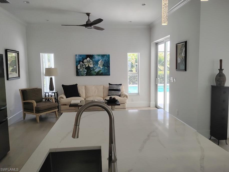 This preferred cul-de-sac residence in the gated community of Mill Run has been fully and thoughtfully updated with the open floor plan that works extremely well with the home's 10' ceilings, 8' Sliding Glass and 8' interior doors. EVERYTHING HERE IS NEW..........Brushed Light European Oak wood flooring.......Impact Glass.......KraftMaid all wood Shaker cabinetry.......Quartz Kitchen Island, Counter and Vanity Tops.........Lennox HVAC system with UV light and Heat Pump.......Never Used Appliances include- Bosch Cook Top.......Samsung SST Wall Oven and Wall Microwave......Samsung SST Counter Depth Refrigerator......Samsung SST Dishwasher.........Zephyr Curved Glass exhaust fan........Newer tile roof........45-LED recessed lights......Marble bath flooring.......Marble bath wet areas to the ceiling........Shower Doors by My Shower Door.......Swedish Washer & Dryer........Base and Upper KraftMaid cabinets in the 16' laundry room ........Minka DC ceiling fans.......Epoxy garage floor.........Impact rated garage door..........Electrical Panel.........Sherwin-Williams Super Paint- interior and exterior.......A Totally Re-Piped Home that is completely up-to-date with all the latest Collier County Codes.....................................................................................................................................................................................................Mill Run is located on beautiful Orange Blossom Rd., just off Goodlett-Frank Rd., along with the gated communities of Stonegate, Monterey and Cambridge Park. This ideal location is just 10-minutes to Olde Naples, and features an A+ rated school zone that includes 3-private schools, including The Village School and Community School of Naples. Mill Run is also just minutes to Costco, Publix, Waterside Shops, Mercado, Collier County Library and Artis-Naples (Naples Philharmonic), and of course Gulf beaches. Additionally, this residence is located in the desirable X-Zone, with no required flood insurance. The uniquely large 15' X 30' lap pool with a 16' tall mansard enclosure completes this private setting on a large .33 acre lot. No need to turn on the lights when showing this home with its abundance of natural light!