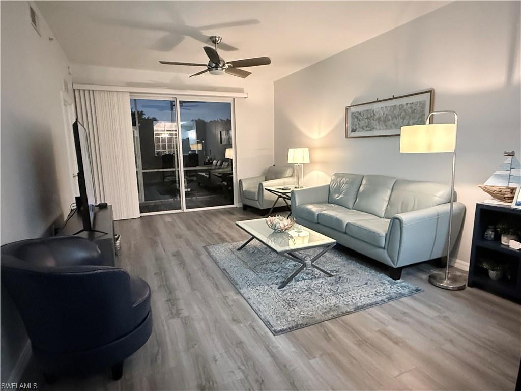 This condo has been redone with all new vinyl flooring throughout. The bathrooms completely remodeled. New appliances in the kitchen and partially furnished. AC system replaced in 2019, Hot water tank 2020. Newer window treatments and five fans. Beautiful view of the lake and golf course with stunning sunsets. Tile roof on building replaced after Irma. Price was determined by recent comparable sales. Bring your buyers they will not be disappointed. Garden apartments are desirable because there are less units in the building. Bundled golf membership included with every door. New kitchen expansion, refurbished golf course coming soon. Brand new bocce courts and 8 pickle ball courts. Recently added more parking for members.