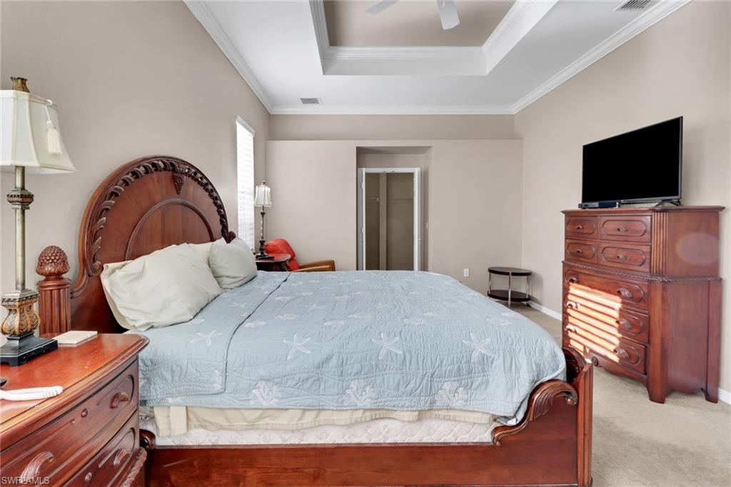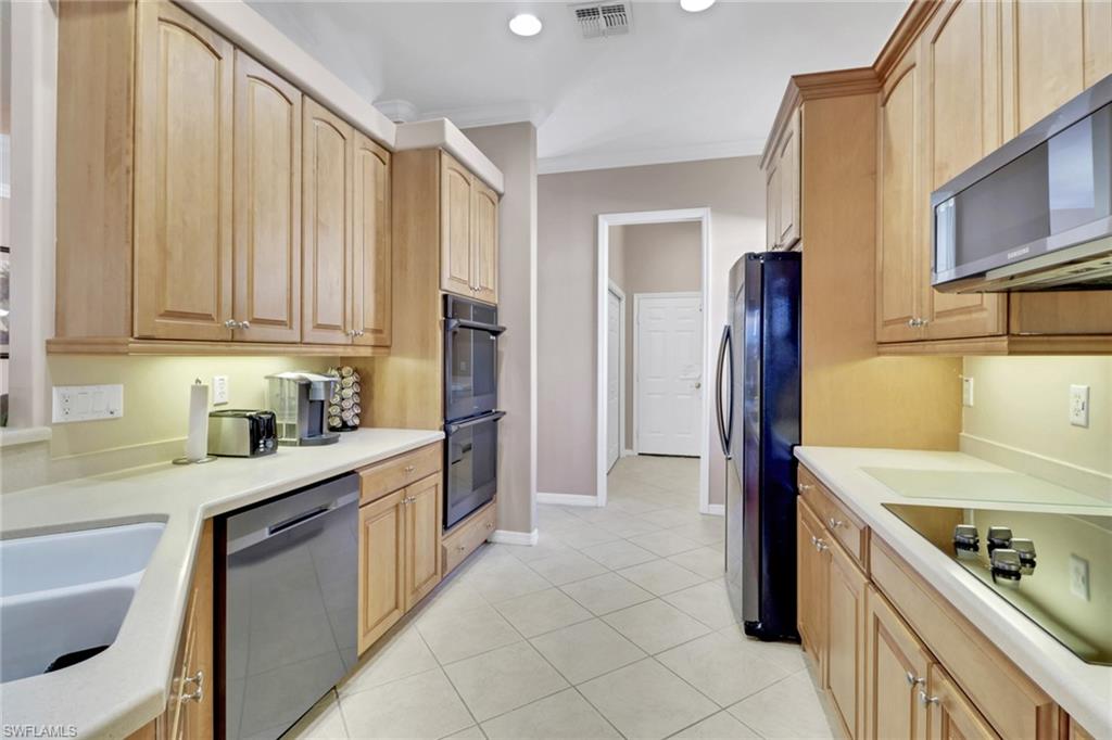 Experience timeless elegance and the best of Florida living in this beautifully maintained 3-bedroom, 2-bath home, featuring nearly 2,000 sq. ft. of refined interior space and stunning golf course and lake views. Perfectly positioned within the desirable Bradford Lakes neighborhood, this residence exudes warmth, sophistication, and functionality u2014 enhanced by volume ceilings, tile flooring in the main living areas, and an abundance of natural light throughout.The thoughtfully designed split-bedroom layout ensures both comfort and privacy. The spacious primary suite offers direct access to the lanai, a serene sitting area overlooking the pool, and a spa-like ensuite bath complete with dual vanities, soaking tub, and separate walk-in shower. The inviting living and dining spaces seamlessly flow into the gourmet kitchen u2014 an ideal setting for entertaining u2014 featuring stainless steel appliances, abundant cabinetry, and a breakfast nook with peaceful lake vistas.Step outside to your private outdoor retreat, where a sparkling pool and spa are framed by lush tropical landscaping and sweeping fairway views. Whether hosting guests or savoring a quiet evening, this outdoor oasis provides the perfect blend of tranquility and sophistication.Ownership includes a bundled golf membership, granting access to the communityu2019s impressive array of amenities: an 18-hole championship golf course, elegant clubhouse with dining and social events, resort-style and lap pools, tennis and pickleball courts, bocce, and a state-of-the-art fitness center. The vibrant social calendar and welcoming atmosphere make every day feel like a luxury resort getaway.Located just minutes from world-class dining, shopping, I-75, and Naplesu2019 renowned white-sand beaches, this exceptional property blends the serenity of a gated golf community with the convenience of a prime Naples locale.