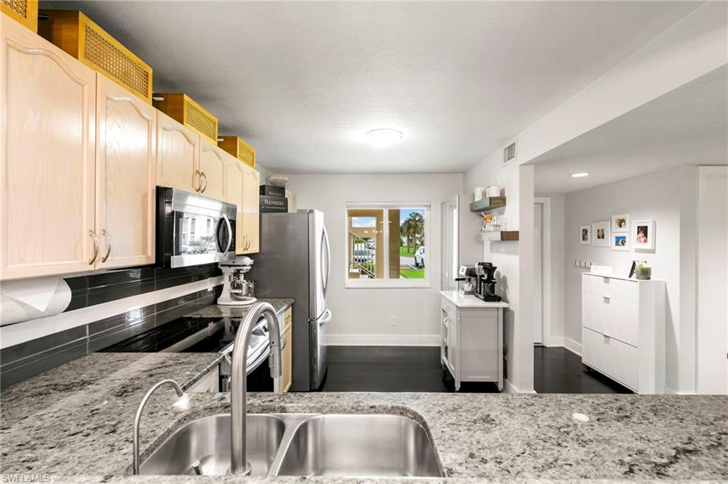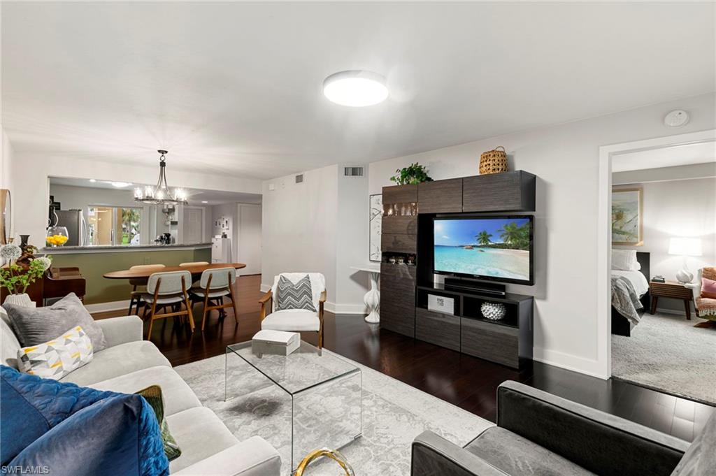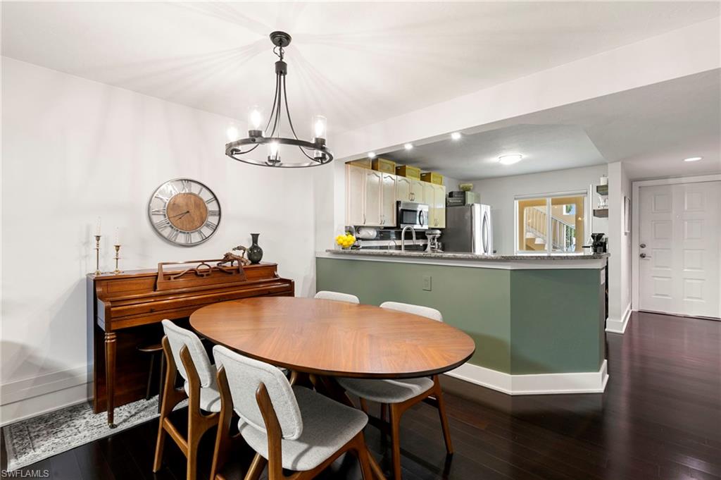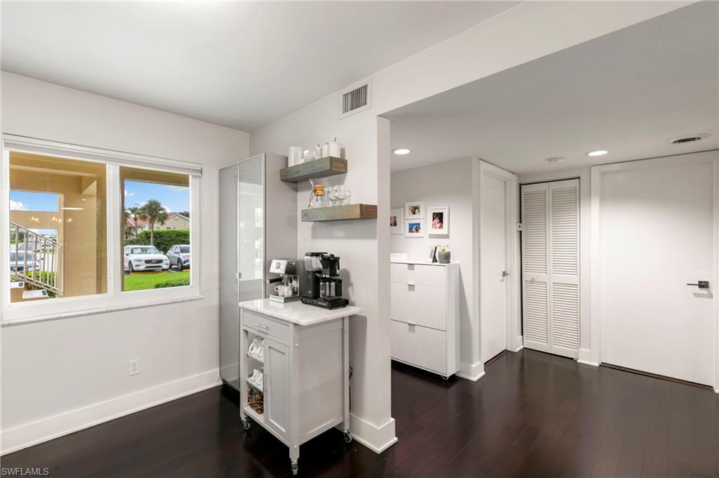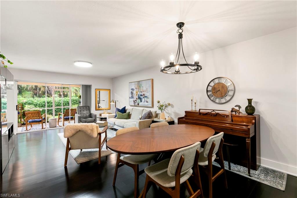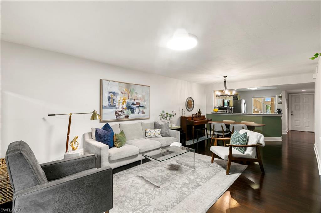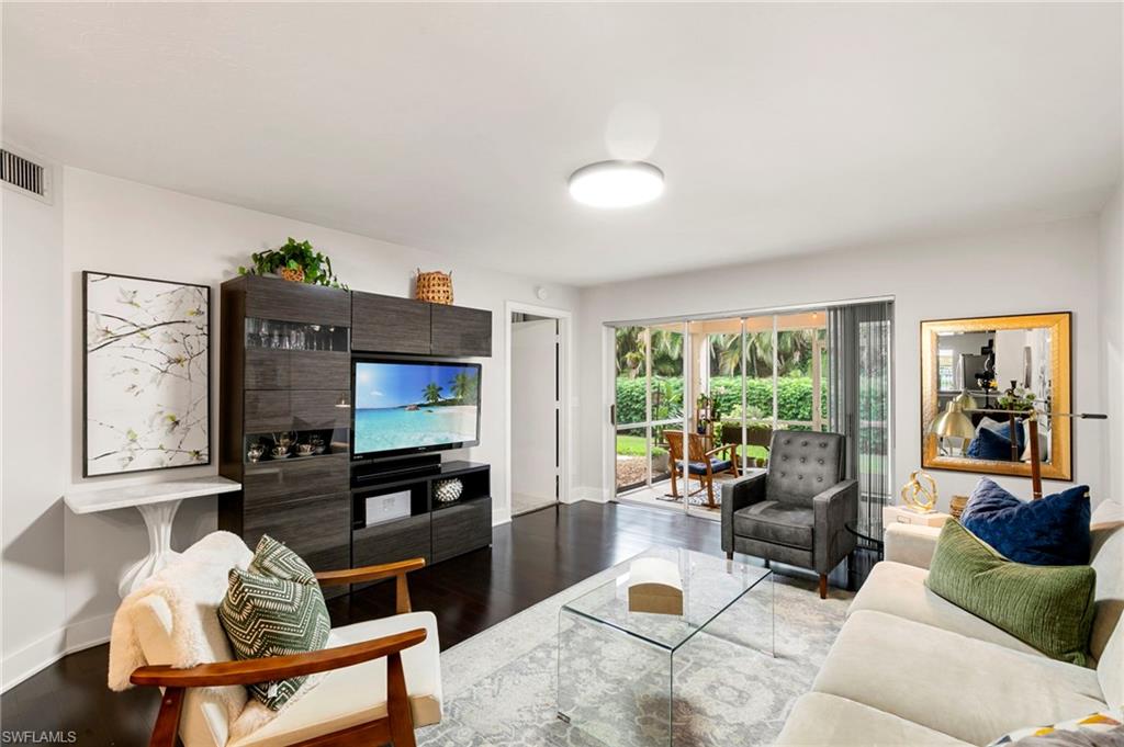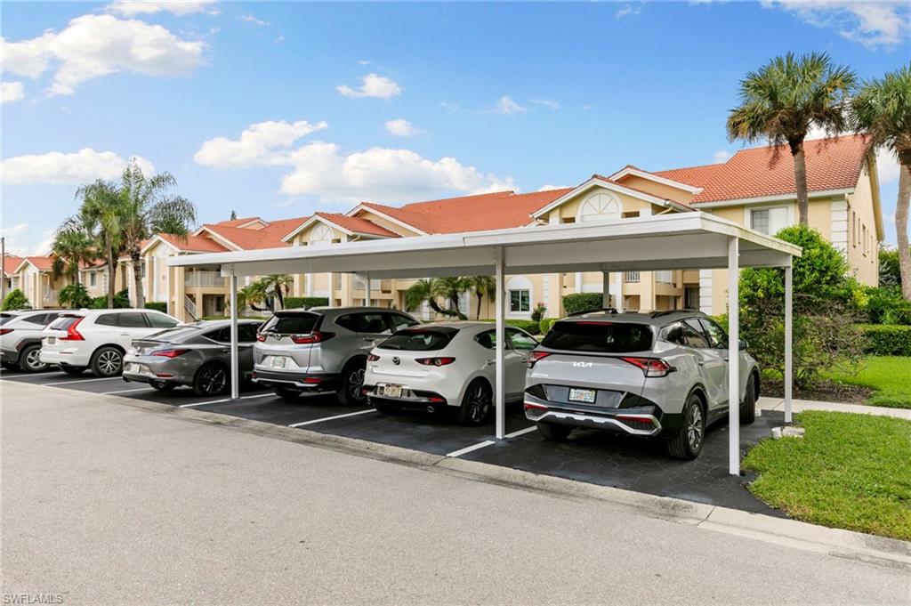 Your Modern Naples Oasis Awaits! Updated, Ground-Floor Condo in a Prime Location.Discover the perfect blend of modern luxury and unbeatable convenience in this beautifully updated first-floor condo in The Villages of Emerald Lakes. Step inside to find rich, dark wood floors flowing through a bright (thanks to the updated LED lighting), open-concept living space, made possible by the thoughtful removal of a wall in the kitchen. The updated kitchen is an entertainers delight, featuring granite countertops, a stylish backsplash, stainless steel appliances, and a pantry for ample storage.In the spacious primary suite you'll find a custom walk-in closet and a gorgeously remodeled ensuite bathroom that feels spa-like with a large vanity, built-in linen storage, and a floor-to-ceiling tiled walk-in shower.Step outside onto your screened lanai and enter a private, garden-like paradise. With charming plantings, stepping stones, and ambient string lights - the perfect spot to enjoy sunset painted skies thanks to the desirable western exposure. This home is fortified with impact-resistant windows for peace of mind and includes a deeded covered carportu2014a rare and valuable amenity.The location of The Villages at Emerald Lakes is simply unmatched. Situated off of a tree lined street on natural lake, this community is a true Naples gem. You'll be zoned for A-rated, award winning schools: Pelican Marsh Elementary, Pine Ridge Middle, and Barron Collier High which has won `#1 High School in Collier County`. Leave the car at home and walk to Venetian Plaza for a workout at Orange Theory or Pilates, or grab a healthy bite at Food & Thought 2. Hop on your bike for a short ride to the upscale shopping and dining at Mercato and the Galleria Shoppes at Vanderbilt, or drive just 5 minutes to soak up the sun at Vanderbilt Beach.Enjoy financial peace of mind knowing this community is not subject to costly SIRS, Milestone, or Turnover Reports, protecting you from the risk of large special assessments associated with the recent changes in condo ownership. With recent upgrades like new gated access and refinished pools, The Villages of Emerald Lakes is a secure and beautifully maintained community. Don't miss this rare opportunity to own a piece of paradise in the heart of it all!