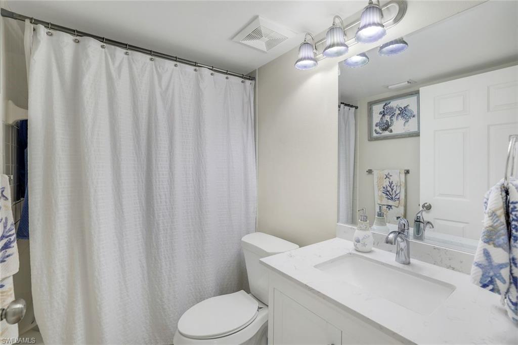 First-Floor Condo in Prime North Naples Location: This nicely updated and meticulously maintained 2-bedroom, 2-bath first-floor condo offers an abundance of natural light and a spacious open floor plan. The modern kitchen features recently installed granite countertops and stainless-steel appliances. The master bedroom has an updated ensuite bathroom featuring dual vanities. The guest bedroom and updated second bath offer versatility in that it is ideal for guests, a home office or as a hobby space. The split-bedroom layout offers comfort and privacy for both owners and guests. Recent Upgrades Include:* Microwave (2023)* Garbage Disposal (2025)* Reverse Osmosis Water Filtration (2023)* Central Air Conditioning (2018)* Smoke Detectors (2023)* Ceiling Fans (2023)This condo includes one assigned covered parking space, an additional resident space and ample guest parking. The community will become a gated community in November for added security. This condo is an excellent investment opportunity and is currently leased. Alternatively, it is a perfect full-time residence or a seasonal retreat. In addition, the Board has recently voted to not increase the HOA fees and funding is in place for capital expenditures.