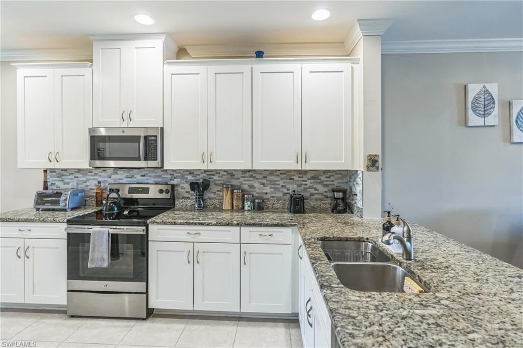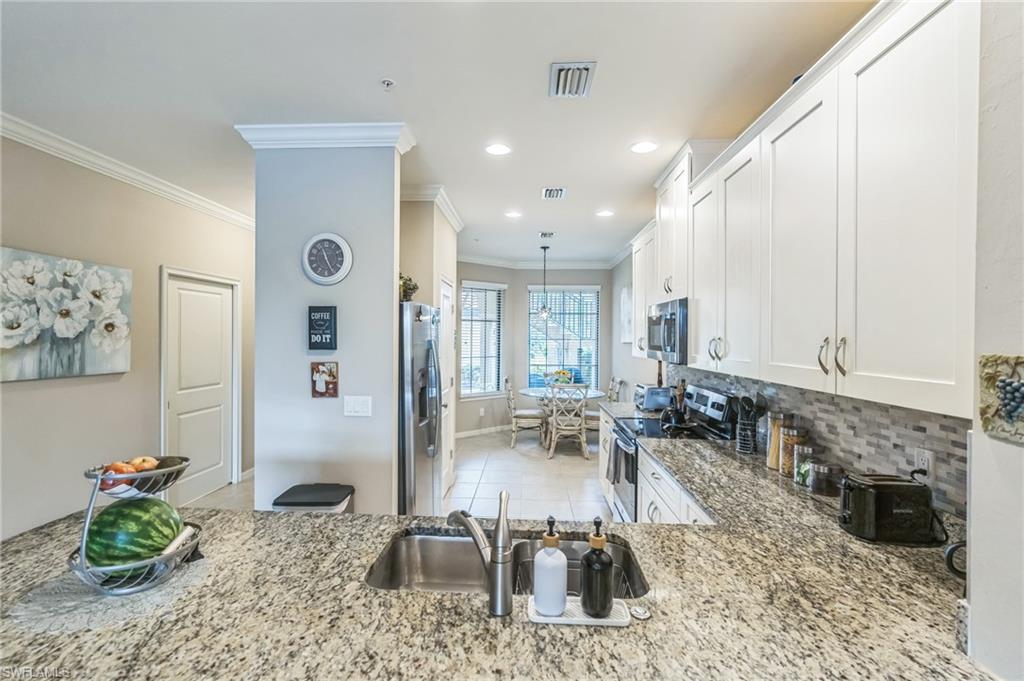 Welcome to this beautifully maintained 2-bedroom, 2-bath condo in the heart of Naples! This bright and spacious home features an open-concept layout with neutral tile flooring, crown molding, and abundant natural light throughout. The kitchen is equipped with white cabinetry, granite countertops, and a breakfast nook that opens to the living and dining areau2014perfect for entertaining. Enjoy a serene ambiance with coastal-inspired decor and an oversized sectional ideal for relaxing. Located in a well-kept community close to shopping, dining, beaches, and everything Naples has to offer. This move-in-ready unit offers comfort, convenience, and Florida charm! - All information and images have been provided directly by seller.