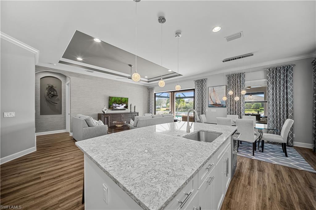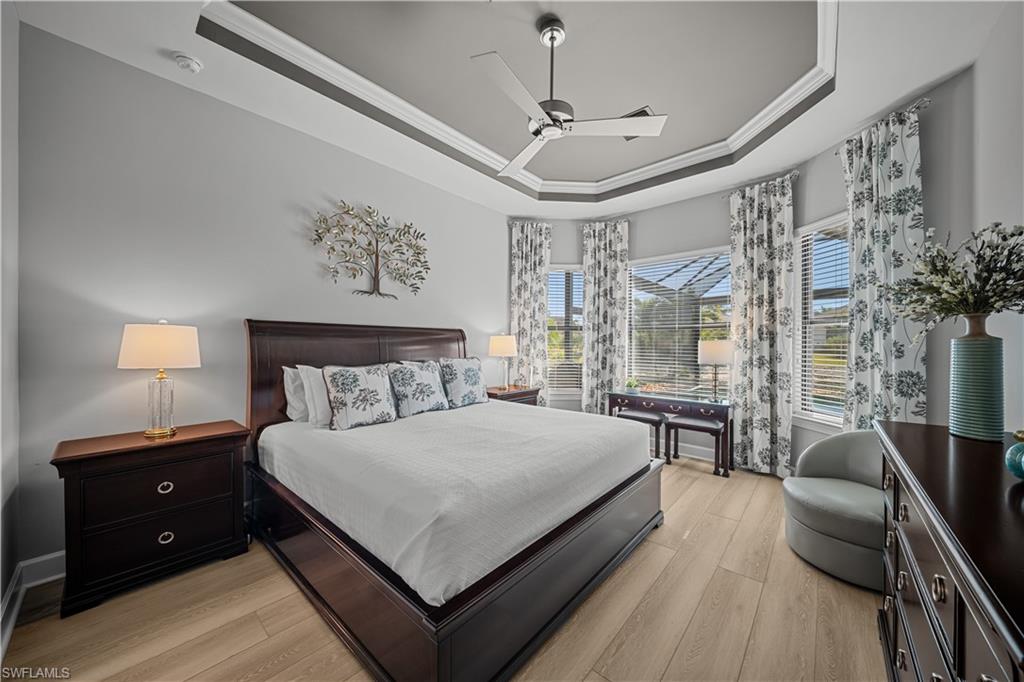 ITu2019S ALL ABOUT THE VIEW - LIVE A VACATION LIFESTYLE IN ESPLANADE!FULL GOLF MEMBERSHIP INCLUDED - This immaculate and well appointedu201cExpanded Farneseu201d is situated on a premium SOUTH FACING LAKEFRONT LOT withpeaceful water and golf course views (no cart path). Inside, you will find 3 en-suitebedrooms plus powder room and den, and nearly 2,100 sq ft of open concept livingspace. From the moment you walk in the door, you are greeted with wood floorsthroughout the entire home (zero carpet) and a pocketing sliding glass door that leadsyou to the extended lanai complete with custom 55k BTU Empire GAS fireplace andGAS heated pool with raised spa, all enclosed by a super screened cage with picturewindow openings on all sides of the cage.u00a0u00a0Motorized roll down hurricane screens andextensive enhanced landscaping with professional landscape lighting add to thisoutdoor oasis. The kitchen is the heart of the home and features shaker style cabinetry,Cambria quartz countertops, and GE Cafe appliances including a GAS cooktop and isopen to the great room and eat-in kitchen.u00a0Other fine appointments include: NEW WHOLE HOUSE GENERATOR (2025); NEWGAS POOL HEATER (2025); air conditioned extended garage with new EPOXYFLOOR; primary suite walk in closet with custom shelving/drawers; hurricane impactfront door with matching sidelight; freshly painted exterior (2025); spacious and updatedLaundry Room with cabinetry; updated light fixtures & fans; tankless GAS hot waterheater; 8' doors/10'; ceilings; and more!u00a0Esplanade Golf & Country Club of North Naples offers a true u201cLifestyle Communityu201d withworld-class amenities, including a resort pool with cabanas and the popular u201cBahamaBar,u201d tennis, pickleball, bocce, a 14-mile network of bike/walking trails, and an 18-holeprivate golf course. The impressive 15,000 Sq Ft clubhouse features a restaurant, bar,wine-tasting room, wine lockers, and a Starbucks-style cafu00e9. Best of all, the propertyu2019slandscaping, irrigation, golf membership, and all community amenities are coveredunder a quarterly fee of just $3,743u2014no additional fees or memberships required! Don'tmiss your opportunity to own this exceptional home in one of Naplesu2019 most sought-aftercommunities. Schedule your tour of this stunning home and Esplanade Golf & CountryClub today! COMING SOON TO ESPLANADE (2026): Fully renovated and expandedpoolside Bahama Bar; expanded outdoor bar at the Barrel House; expanded golfpractice range; and an AIR CONDITIONED INDOOR PICKLEBALL COMPLEX with fourindoor courts.