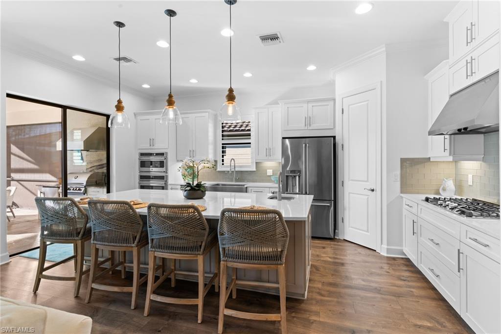 Gas Cooktop, Dishwasher, Disposal, Double Oven, Dryer, Grill - Gas, Microwave, Refrigerator/Freezer, Reverse Osmosis, Tankless Water Heater, Wall Oven, Washer, Wine Cooler