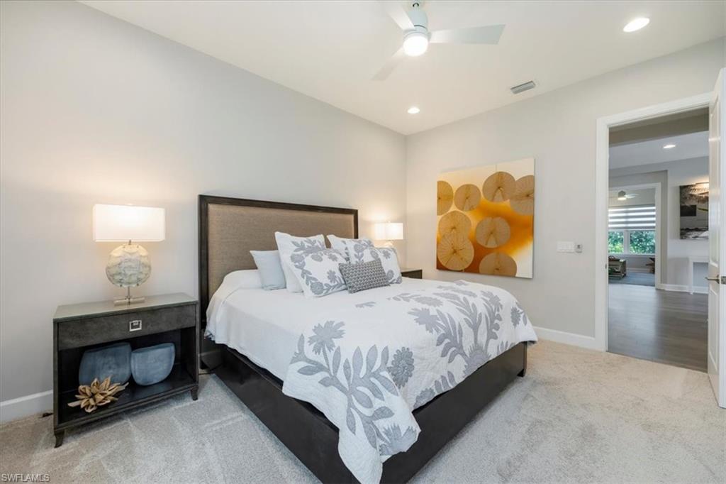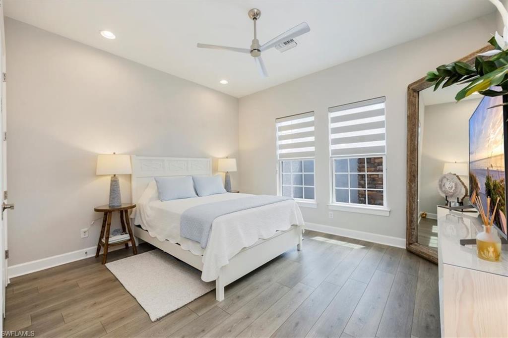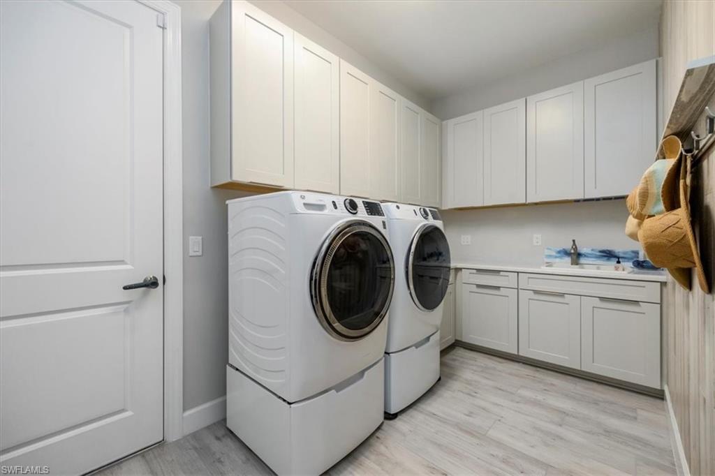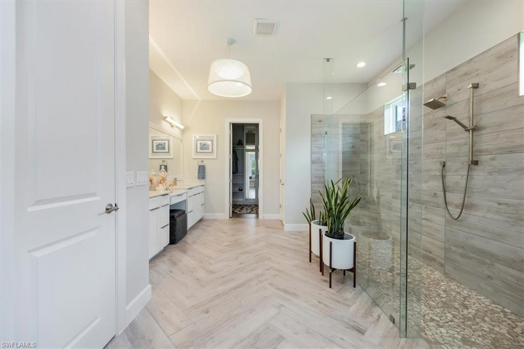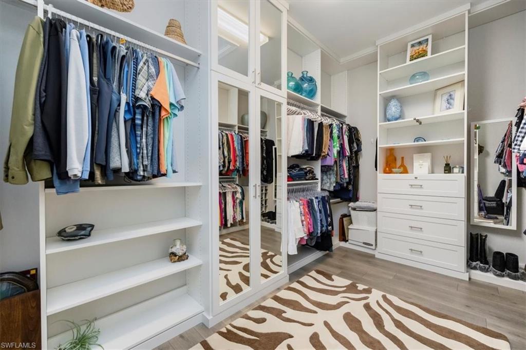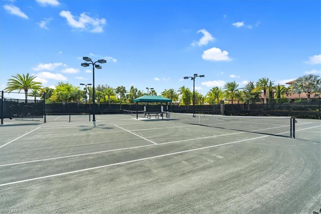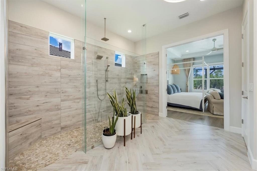 This stunning Pallazzio floor plan offers over 3,000 square feet of elegant living space, complete with three bedrooms, a den, and three full baths. Designed for both comfort and sophistication, the home includes an immediate full golf membership, making it an ideal choice for those seeking a vibrant lifestyle with world-class amenities at their fingertips. Thoughtful upgrades are found throughout the residence, starting with hurricane-rated windows, sliders, and doors, a new hurricane impact front door with matching side panels, and Storm Smart motorized shutters for peace of mind. A whole-house gas generator, tankless hot water heater, and a full water filtration and reverse osmosis system ensure modern convenience and efficiency. Inside, 10-foot ceilings, 8-foot doors, and Synergy cypress wood accents in the entryway, lanai, foyer, great room, primary suite, powder room, and laundry add warmth and architectural character. The extended gourmet kitchen is a true centerpiece, featuring GE Monogram appliances, a natural gas cooktop with wall oven, wine and beverage coolers, glass display cabinetry, and under-cabinet lighting. A SONOS sound system with in-ceiling speakers, custom designer lighting, and professionally designed draperies and blinds elevate the homeu2019s interior design. The spacious primary suite offers a walk-in closet with custom shelving, a luxurious bath with double sinks, makeup area, and a frameless glass shower, while guest suites feature their own stylishly appointed bathrooms. Step outside to a private retreat on the oversized lanai, enhanced by a feature shell wall, bar seating, and a fully equipped outdoor kitchen. The gas-heated saltwater pool and spa with waterfall features are surrounded by picture window screens, mature native landscaping, and front and rear landscape lighting, creating a serene backdrop of preserve views and glowing sunsets. Additional highlights include an extended two-car garage with epoxy flooring, built-in storage, insulation, air conditioning, and a refrigerator, as well as ceiling fans in every bedroom, the den, great room, and lanai. High-end furniture is negotiable, allowing for a seamless move-in experience. Every detail of this property has been carefully curated for luxury, comfort, and peace of mindu2014ideal for both entertaining and quiet enjoyment.