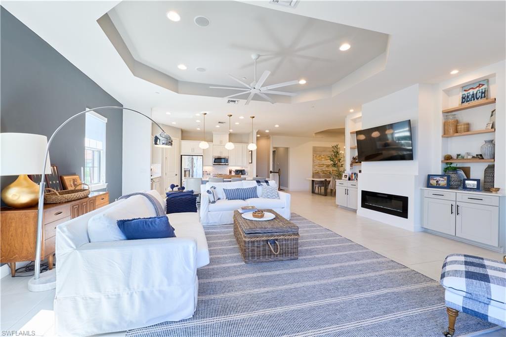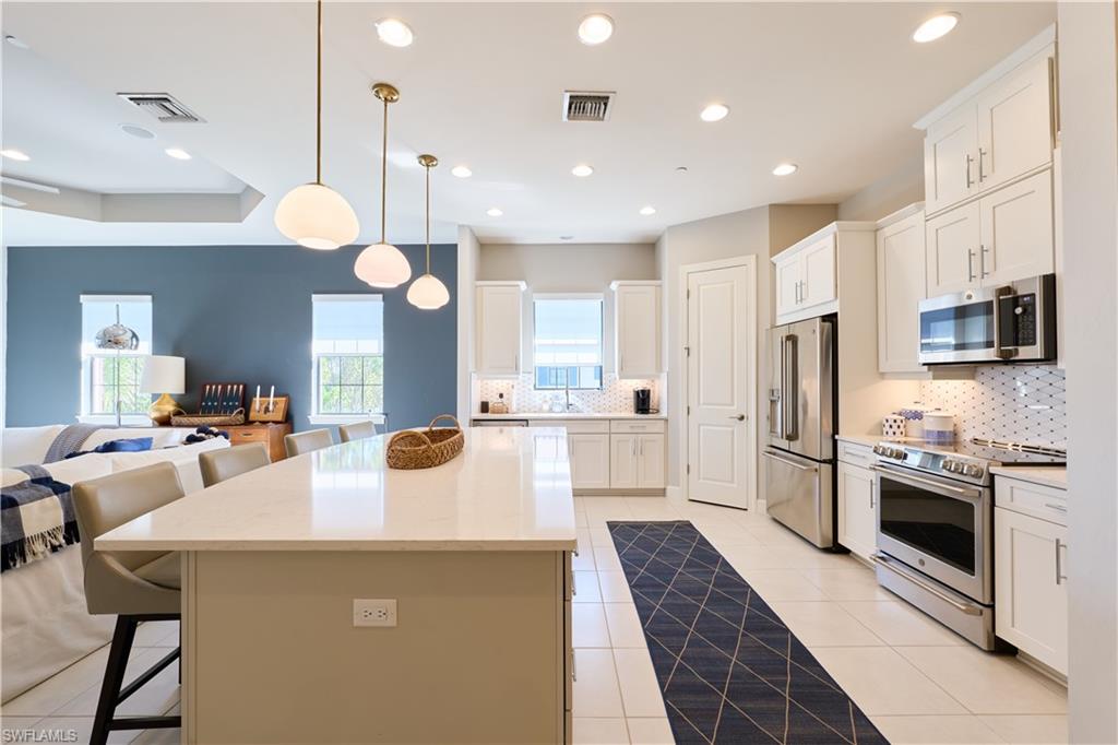 Experience refined country club living in a picturesque North Naples setting. This second-floor end-unit coach home offers a bright, open floor plan highlighted by a generous 9-by-6-foot kitchen island, ideal for both everyday living and entertaining. The living area features zero-corner sliding glass doors that open to a private lanai with tranquil lake views, creating a seamless indooru2013outdoor lifestyle.The kitchen and all three baths feature elegant quartz countertops and crisp white cabinetry. A newly installed wine bar, complete with a wine cooler, adds an elegant touch for entertaining and everyday enjoyment.Additional highlights include hurricane-impact windows and doors, soaring 10-foot ceilings, and 8-foot high interior doors.The living area is enhanced by a sleek new electric fireplace. The residence includes an attached one-car garage.A club/sports membership provides access to Esplanadeu2019s exceptional amenities (excluding in-season golf). Residents enjoy six tennis courts, four bocce courts, a state-of-the-art fitness center with aerobics studio, gated dog park, resort-style pool, poolside Bahama Bar, full-service day spa, and a 15,000-square-foot culinary center featuring a restaurant, bar, wine tasting room, and private wine lockers.An exceptional opportunity to enjoy luxury, lifestyle, and leisure in one of North Naplesu2019 most desirable communities.