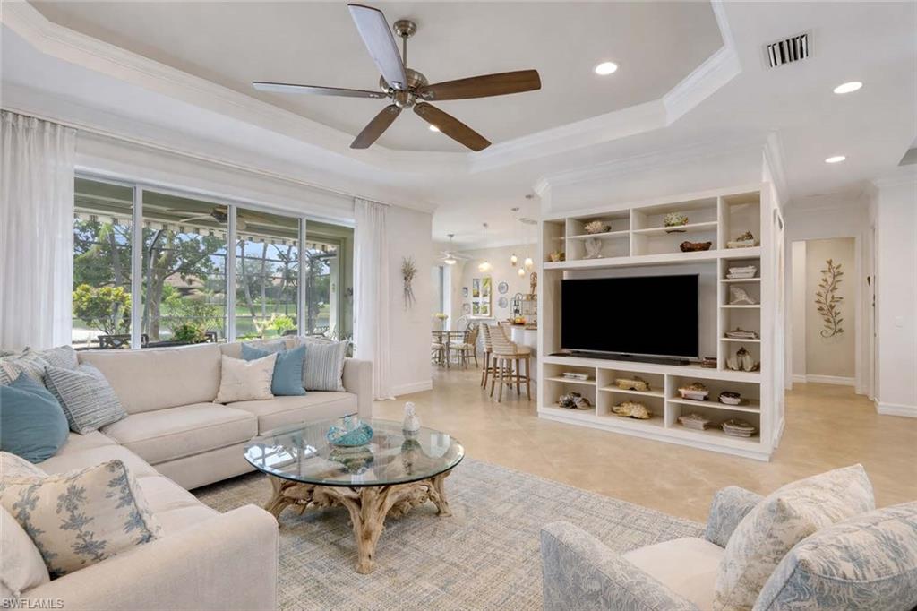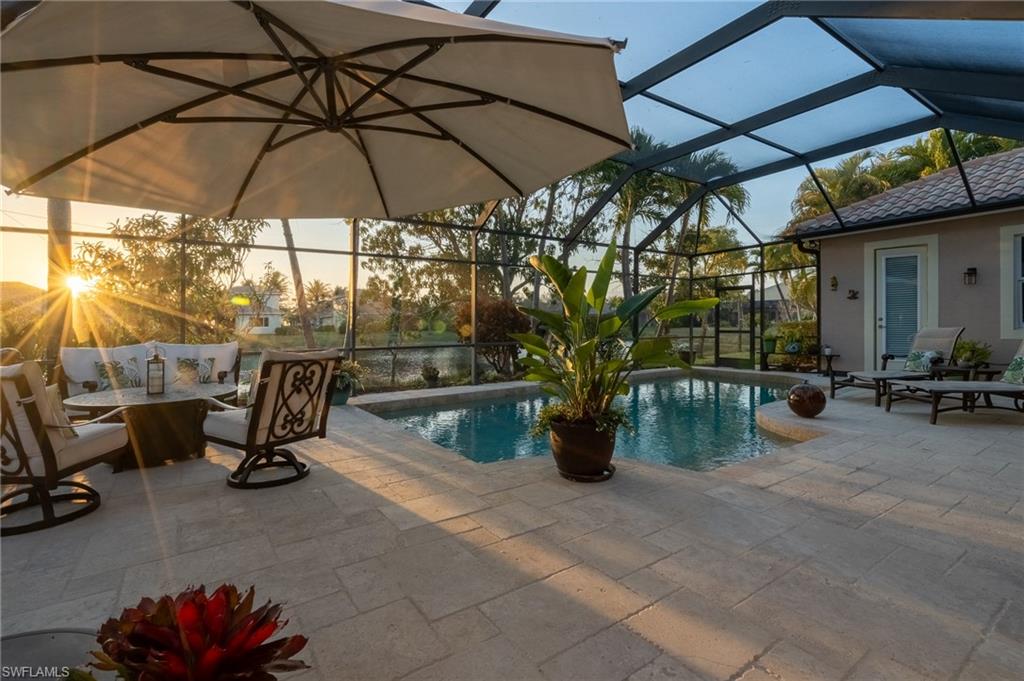 The premier lot everyone seeks in North Naples: western-facing, direct lakefront with breathtaking Naples sunsets.Perfectly positioned in the quiet back section of this exclusive 109-home community, this meticulously maintained 4-bedroom + den, 3-bath pool home offers a rare combination of privacy, nature, and convenience. From the screened lanai, enjoy serene lake views where blue herons, osprey, and egrets gather while spectacular western sunsets light up the sky each evening. The setting is peaceful and private, with nature as your backdrop.Inside, the kitchen provides generous cabinetry, new stainless steel appliances, and a sunlit breakfast nook with tranquil lake views, creating a comfortable space for both daily living and casual gatherings. The layout connects seamlessly with the surrounding living areas so you can always see what's happening with the tranquil surrounding nature outside. Tile and wood flooring extend throughout, white a separate dining area nearby adds additional space for hosting and entertaining.The generous primary suite offers direct pool access and a spa-like bath, while three additional bedrooms and a versatile den provide flexible space for guests, a home office, gym, or playroom.Step outside to your private oasis: a heated pool, expansive screened lanai, and uninterrupted western lake views that make every evening feel special. A full pool bath with direct lanai access adds convenience for outdoor living and entertaining.Additional highlights include newer AC and kitchen appliances, providing peace of mind for the next owner. High ceilings paired with crown molding add architectural elegance and elevate the homeu2019s light, open feel.Located just minutes from Vanderbilt Beach, Mercato, world-class dining, shopping, and top-rated schools, Horsecreek Estates is one of North Naplesu2019 most desirable hidden communities.Premier lakefront lots like this rarely become available. This is a special opportunity to enjoy the very best of Naples living.