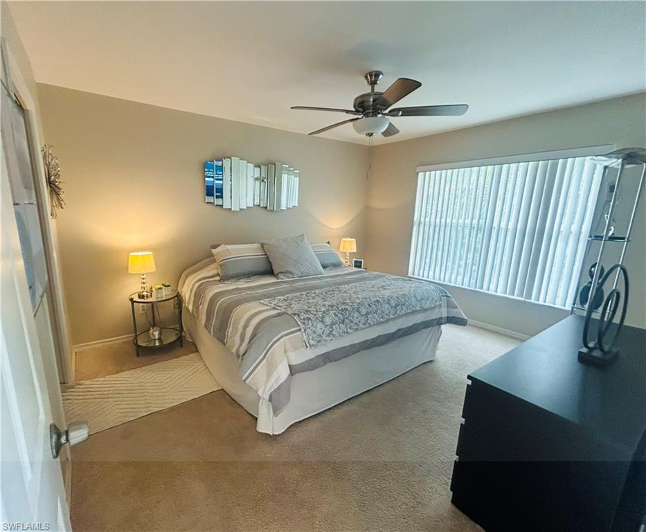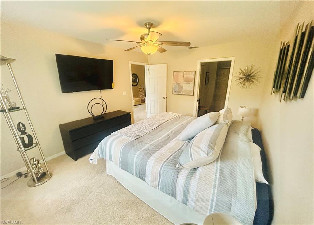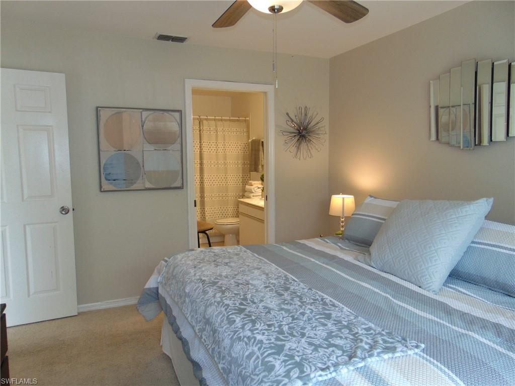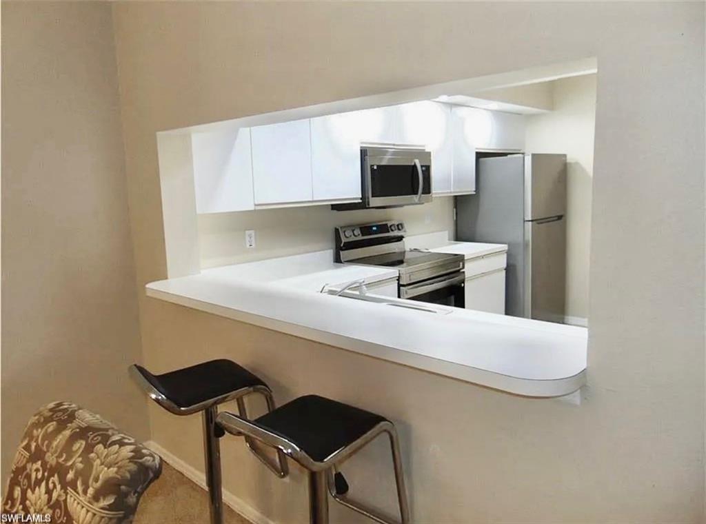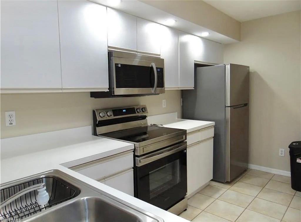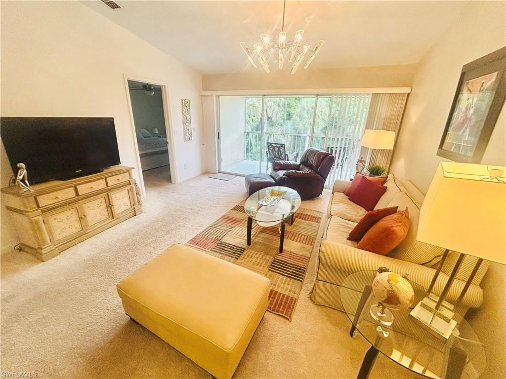 Rare 3 bedroom, 2 bath condo is Move In Ready. High volume ceilings, Freshly Painted, Turnkey Furnished. Nice kitchen with new lighting and Stainless Steel appliances. Spacious master bedroom and bath with walk in closet.Nice western facing screened lanai with private view and peek at the pool. This complex has 3 pools, tennis/pickleball court, and fitness center. Main pool also a lap pool. Guarded gated Imperial Golf Estates is a quiet community in North Naples. This condo comes with a 6 month rental in place for last 3 years, through April. New owner can reap $3900 per month.