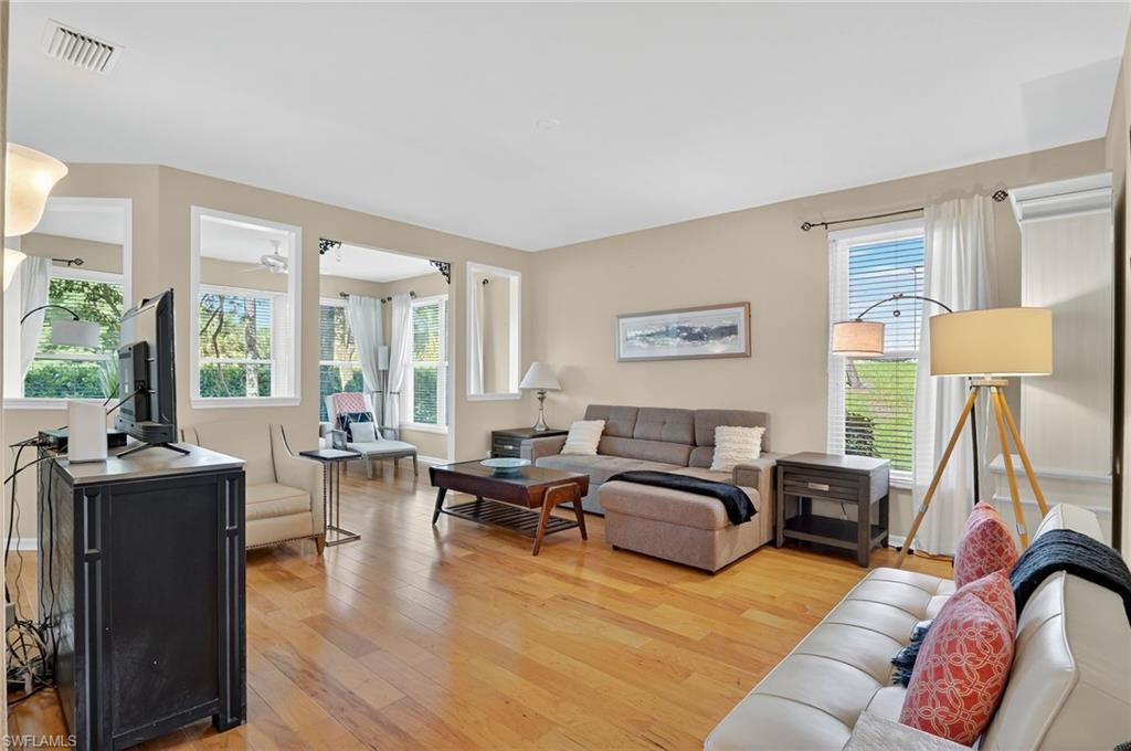 Welcome to Charleston Square u2014 a hidden gem tucked inside the gated Imperial Golf Estates community of North Naples. This beautifully updated first-floor corner residence offers the comfort of a private home with the simplicity of condominium living. With over 1,600 square feet of open, sun-filled space, this two-bedroom, two-bath retreat is the perfect blend of comfort, convenience, and classic Florida style.Step inside and feel right at home. The spacious living area flows effortlessly into the dining space and Florida room, framed by impact-resistant windows that fill the home with natural light. The large eat-in kitchen is a dream for both cooks and entertainers alike u2014 featuring generous counter space, a pantry, and quality stainless-steel appliances. The open layout allows for comfortable gatherings and easy day-to-day living in a bright, cheerful setting.The split-bedroom floor plan offers privacy for guests while keeping the main living areas open and inviting. The primary suite features dual sinks, a walk-in closet, and a spacious step in shower. Additional highlights include an in-residence laundry, built-in storage, wood, parquet and tile flooring throughout, and a detached one-car garage.Charleston Square is an intimate, well-kept community of just 37 residences, known for its quiet, friendly atmosphere. Residents enjoy a sparkling community pool, scenic walking and biking paths, and beautifully maintained surroundings. Optional golf memberships are available through Imperial Golf Estates, offering access to one of Naplesu2019 most respected private golf clubs.Located on a peaceful cul-de-sac, this property is minutes from Vanderbilt Beach, Mercato, Waterside Shops, and some of Naplesu2019 best restaurants and entertainment. With quarterly fees covering lawn care, water, irrigation, exterior maintenance, and insurance, you can enjoy the Naples lifestyle without the upkeep.Whether youu2019re looking for a seasonal getaway, a full-time residence, or an investment in one of Naplesu2019 most desirable zip codes, this home checks every box u2014 privacy, quality, location, and charm.