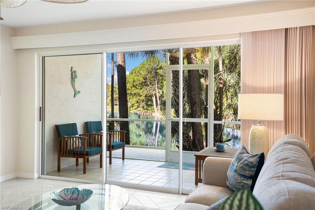 A unique opportunity to own this beautifully maintained turnkey two-bedroom, two-bath first-floor end-unit condominium in sought-after North Naples. Enjoy panoramic views of the lake and surrounding trees from your private screened lanai, with no building next door for added privacy and abundant natural light throughout. Move right in and start living in the Florida lifestyle with newer flooring, a refreshed primary en-suite bath and modern appliances. The thoughtful split-bedroom layout offers comfort and flexibility for guests or a home office. Set in a welcoming community with tennis and two resort-style pools featuring lap lanes, this condominium blends comfort, style and convenience, close to shopping, dining and Naples pristine beaches.