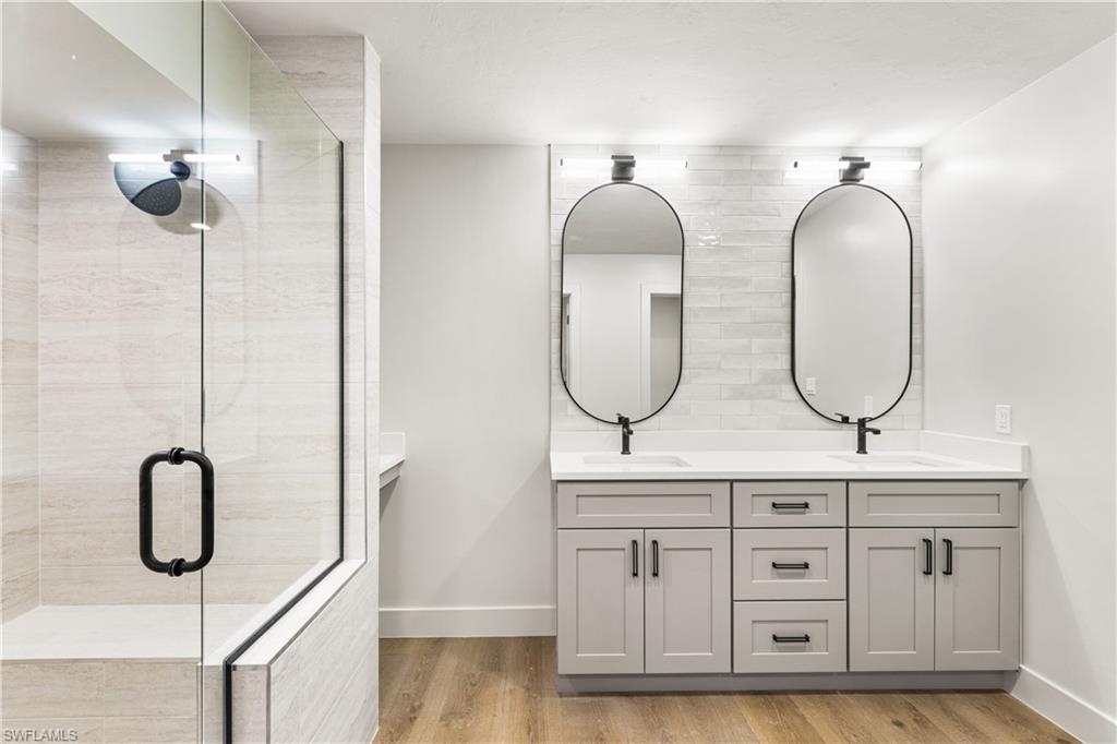 This meticulously renovated home is now available in Imperial Golf Estates. Blending elegant design elements with modern finishes, this home is sure to impress the most discerning clients. The house is perfectly nestled on a large, oversized corner lot of over a third of an acre. Sitting high and dry in the X500 flood zone, complete with a brand new roof system, new hurricane impact windows, and slider storm protection. Nearly every inch of the residence has been improved inside and out. Any tour of the home will surprise and delight you as you move from room to room. The floor plan is very functional and will be a dream to furnish and decorate. The chefu2019s gourmet kitchen is perfect for entertaining and gatherings. Custom cabinetry, sleek quartz countertops, and top-of-the-line stainless steel Thor appliances complete the space. Enjoy expansive spaces and natural wood-look porcelain tile throughout. Bedrooms are generously sized and are complete with walk-in designer-ready closet spaces. The master bedroom features a luxurious en-suite bathroom with dual sinks, a large walk-in shower, and even a make-up counter. Outside, you will enjoy a massive screened-in lanai with a private view of the lush landscaping. Imperial Golf Estates is a premier North Naples gated community. This picturesque site features lush landscapes with four natural preserves, five lakes, six parks, and one cove. Sidewalks wind through large lots and custom homes, perfect for walking, jogging, and biking. The community is zoned for some of the top local schools, including the brand-new Aubrey Rogers High School. Imperial Golf Estates is ideally located near shopping, dining, and the beautiful Wiggins Pass State Park, Vanderbilt Gulf, and Barefoot beaches. With SWFL International Airport just a short drive away, convenience meets luxury in this vibrant community. Experience the charm and tranquility of Imperial Golf Estates, where many residents have made their home for years.