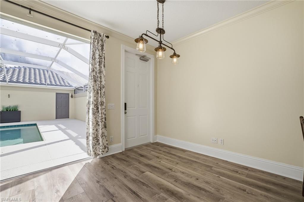 Welcome to 3542 Zanzibar Way in the beautiful, gated community of Island Walk in Naples.This sought-after corner unit Aruba model townhome offers 1,771 square feet of living space, featuring 3 bedrooms and 2u00bd bathrooms, and a brand-new roof installed in 2025, providing added value and peace of mind.Designed for both comfort and easy Florida living, it showcases beautiful crown molding on the first floor and a neutral color palette throughout, creating a bright, timeless, and move-in-ready feel. The kitchen and living area have also been freshly painted as well as the lanai. The home offers abundant storage throughout, including thoughtfully designed closets, built-ins, and additional storage space that make everyday living both organized and convenient.The home features a dining area with plenty of windows, filling the space with natural light and creating an inviting setting for meals and entertaining. The warm and inviting kitchen serves as the heart of the home and includes granite countertops and stainless-steel appliances, offering a comfortable space for everyday living and gathering, along with an additional living area just off the kitchen. Step outside to your private screened lanai with a pool, perfect for relaxing and enjoying the sunny Southwest Florida days.A standout feature of this home is the detached garage, providing both convenience and additional storage. From the garage, you can walk through the lanai and enter the home through the rear entrance, offering easy access without needing to use the front door.Located in a quieter area of Island Walk, the home also enjoys a serene lake view right outside the front door, creating a peaceful and welcoming setting.Island Walk is known not only for its exceptional lifestyle but also for its relatively low HOA fees, especially considering the wide range of amenities offered. Residents enjoy a vibrant Town Center with a restaurant, resort-style pool, lap pool, tennis, pickleball, bocce, a putting green, scenic walking and biking paths, and even its own gas station, post office, and car wash within the community.Whether you are looking for a full-time residence or a seasonal retreat, 3542 Zanzibar Way offers comfort, convenience, and the true Naples lifestyle.