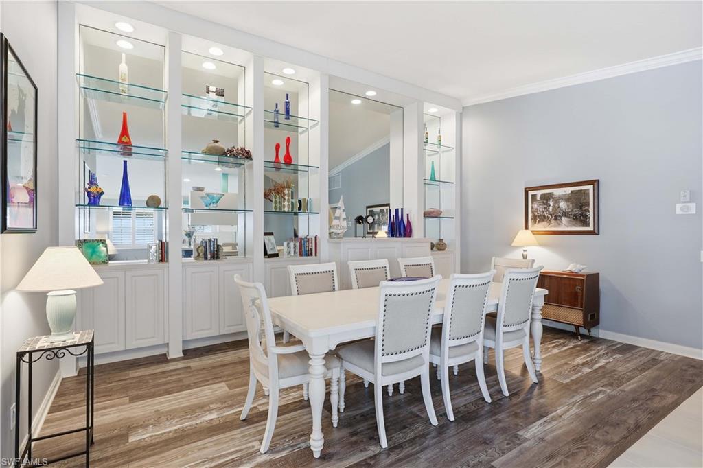 Discover this beautifully maintained Capri villa with tranquil lake views in the highly desirable community of Island Walk. Ideally situated on a quiet street with no through traffic and desirable southeastern exposure, the home features a bright open floor plan designed for comfortable living and easy entertaining.The outdoor living space is a true highlight, featuring a private heated pool, and motorized lanai storm shutters for added convenience and protection. Recent updates include a newer roof, newly painted exterior, and elegant crown molding that adds a refined finishing touch throughout the home.The gracious and serene lifestyle of award-winning Island Walk comes with amenities galore and low fees that include HDTV and high-speed internet, lawn and landscape care, and irrigationu2014all included with no CDD. The communityu2019s Town Center offers resort and lap pools, seven Har-Tru tennis courts, four pickleball courts, a state-of-the-art fitness center, putting green, bocce courts, post office, the popular restaurant Casa Cotzelli, gas station, car wash, and hair and nail salons. All just minutes from world-class dining, shopping, and beautiful Gulf beachesu2014your home in paradise awaits. information prepared with care but subject to error buyer to verify to their satisfaction