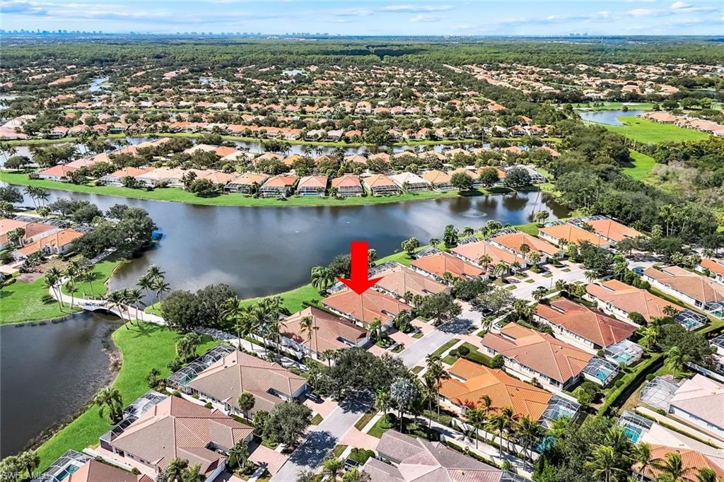 Welcome to 4251 Redonda Lane in Island Walk. Island Walk is a popular gated community located in North Naples and is only 7 miles from Vanderbilt Beach. This Southwestern Long Lake View Capri Attached Villa offers 2 spacious bedrooms, 2 bathrooms, a 2-car attached garage, along with a private side entrance. Entertain family and friends on your caged lanai with magnificent lake and bridge views. Walking inside, you'll instantly notice the open concept floor plan with a spacious kitchen and Great room. Plus, right outside of your main living area, you have a large screened-in lanai with a privacy wall. The Roof was replaced in 2023. Outside of your front doors and within the gates, Island Walk is bustling with Activities and Amenities. There are miles of walking paths and bridges for strolling and biking, a Resort style pool and a Lap pool, a Fitness center, Tennis & Pickleball courts, a wonderful restaurant, post office, gas station, Bocce courts, car wash, beauty and nail salon and even a putting green. There are so many options close by for dining and entertainment that are just a short drive away.