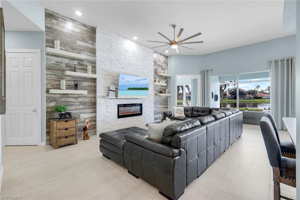 **ONE OF THE BEST HOMES IN ISLANDWALK**SPECTACULAR LAKE-VIEW** This Designer Carlyle Model features stunning, long lake, walking bridge, sunrise views and offers nearly 2500 square feet of elegance and style that will satisfy even the most discerning of buyers. Custom wall of kitchen cabinets! Glamour abounds in this sophisticated gem. The crown jewel of Islandwalk boasts a quartzite brick feature wall with remote controlled fireplace and mounted TV. Sparkling white quartz countertops, Newer Samsung Appliances, Barn door, artisan crafted cabinets and open shelving, European range hood, gray beech hardwood floors throughout. New roof 1-2 years old, New pool heater, pump and filter, Pool deck painted, Garage epoxy floor, Kitchen appliances -3 years. Tesla charger and Generator electric hookup-panel. If you've been looking for a gem with amazing features and you want to move right in with just your toothbrush, then this is the home for you. Award Winning IslandWalk comes with Amenities Galore and is located within easy walking or biking distance to all the Island Walk TownCenter amenities with resort and lap pools, 8 har tru tennis courts, state of the art fitness center, putting green, bocce courts, post office, Fantastic Casa Cotzelli Restaurant, gas station, car wash, hair and nail salons. Come Enjoy Paradise which includes HDTV, High Speed Internet and Lawn Care. Donu2019t let this one get awayu2026 make this Stunning Oasis YOUR address in Paradise !!