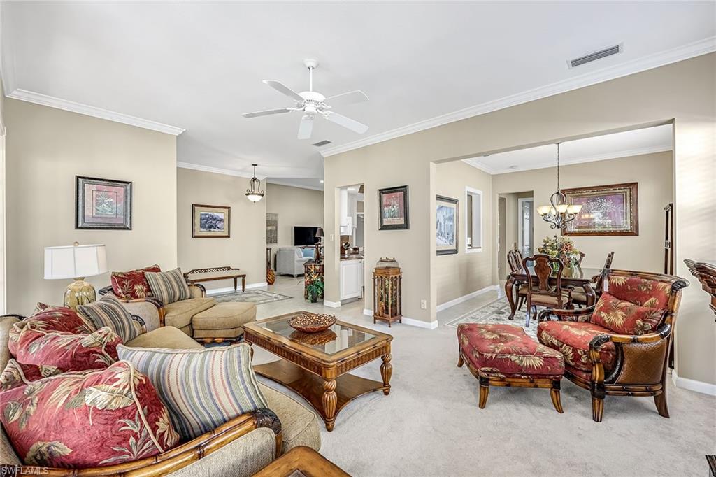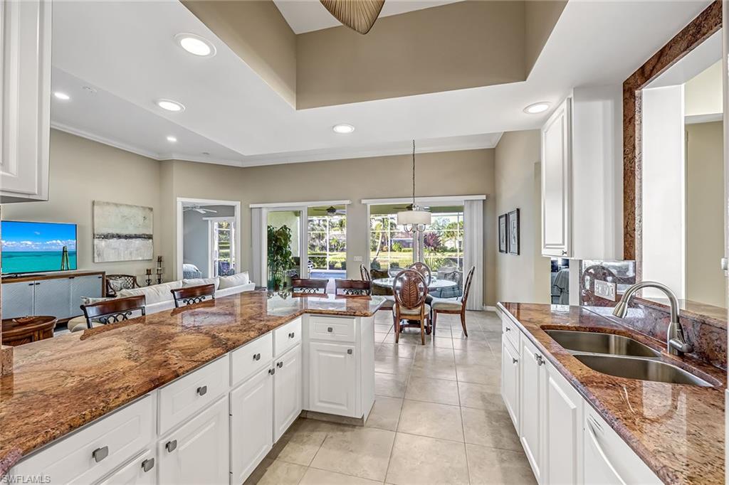 Competitively priced Carlyle model in the desirable North Naples gated community of Island Walk. This well-maintained four-bedroom, three-bath residence offers style and comfort the moment you step inside. Inviting upgrades include entryway lighting, professionally installed landscaping and a newer roof (2025), adding value and peace of mind. The home features and open floor plan with tile throughout the main living areas, ideal for everyday living. Impact sliding doors lead to the private pool with a screen enclosed lanai overlooking tranquil lake views. The covered patio includes conveniently placed electrical outlets, ideal for entertaining or added functionality. Relax and enjoy the welcoming front porch as the ideal spot for your morning coffee and garden views. Other interior features include a spacious kitchen with breakfast bar seating and morning room, plus a formal dining room for special occasions. High hat lighting has been installed throughout the 12-foot family room volume ceiling. The primary bedroom leads to a private en-suite bath with dual sinks, and a separate tub and shower. Residents enjoy resort-style amenities including a pool, fitness center and lap pool, pickleball, tennis, putting green, post office, hair salon and scenic walking paths. The Town Center restaurant is a popular spot to dine and socialize with your neighbors. HOA fees include internet, cable, lawn care, and on-site management company. In highly regarded school zones, this community is an excellent choice for families seeking security, space, and convenience to local beaches, shopping, restaurants and Southwest Florida International Airport.