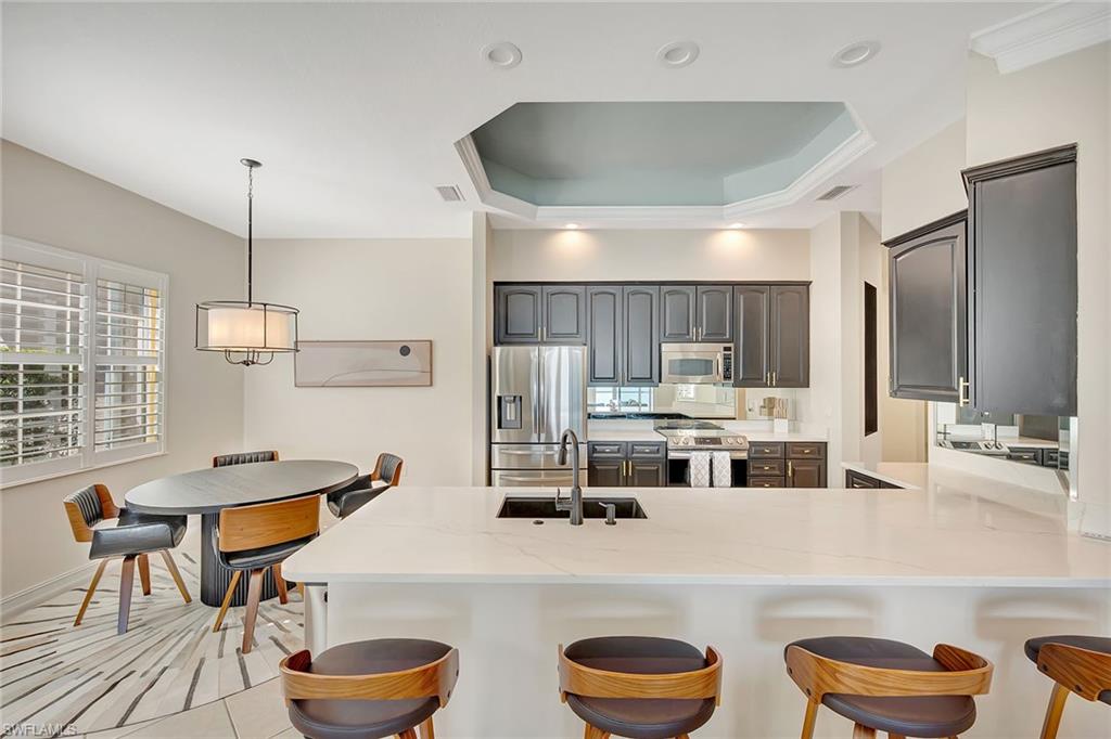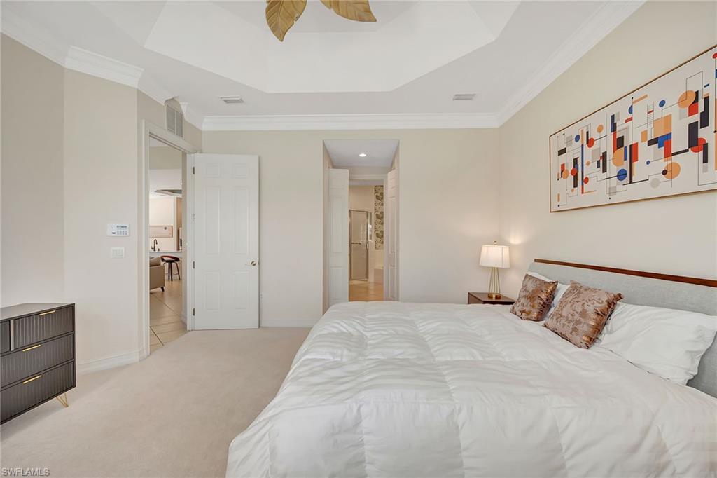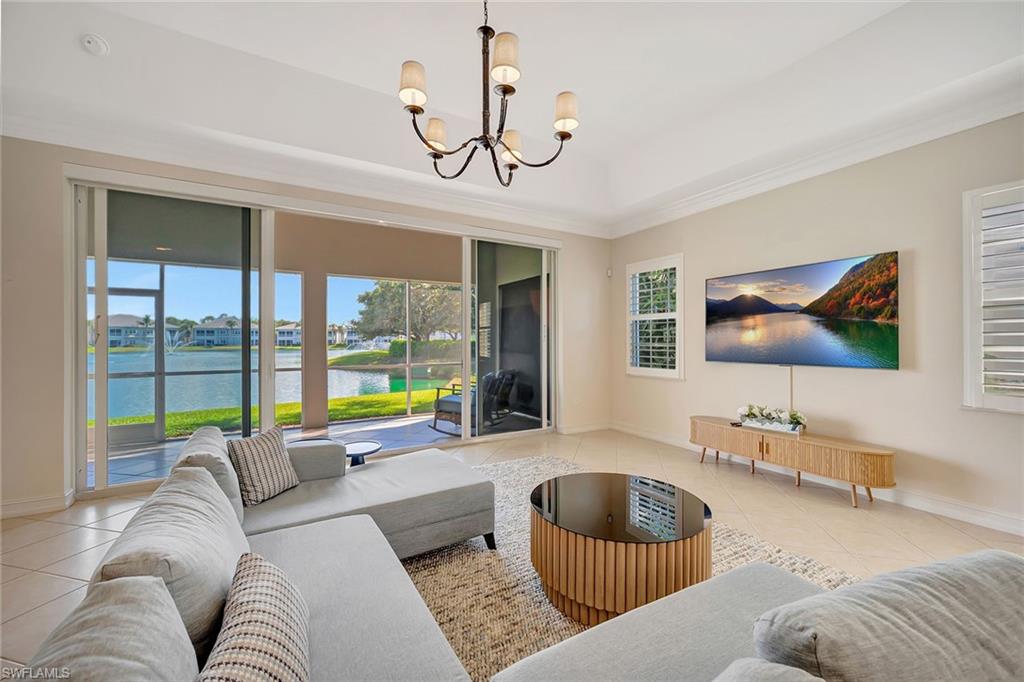 ANNUAL RENTAL available now - PET-FRIENDLY with approval. Bike to Mercato or Vanderbilt Beach from this 3-bedroom 3 bath coach home ideally situated in the gated North Naples community of Lemuria. Located off of Goodlette Road, south of Vanderbilt Beach Road, this 2,400 sf, first floor condo with an attached two-car garage and 10' ceilings, is available UNFURNISHED or PARTIALLY FURNISHED and lives like a single-family home. Take in the lake and fountain view from the Screened Lanai, Great Room, Kitchen and Dining Nook. The Primary Bedroom Suite enjoys the same lake view, two walk-in closets and a large en-suite bath with a walk-in shower, soaking tub, dual vanities and a private water closet. The other two bedrooms are near the front of the home - one with its own en-suite bath with a shower, and the other with a nearby bath that has a shower/tub combination. All bedrooms are carpeted, but the remainder of the home is tiled. There is also a unique carved out space surrounded by low bookshelves which can be used as a home-office, playroom or formal dining area - make it your own! Other wonderful offerings include a breakfast bar, a large kitchen pantry, built-in desk space, a dedicated laundry room, and a large walk-in storage closet for suitcases and other `stuff`. Lemuria is a gated community with a small but well-outfitted clubhouse with a catering kitchen, party room, card room and fitness center. There is also a heated pool and spa, a grill area, and tennis courts.
