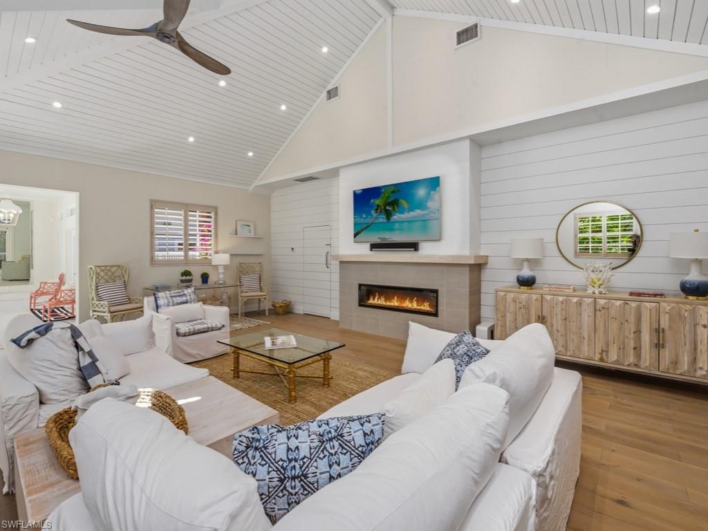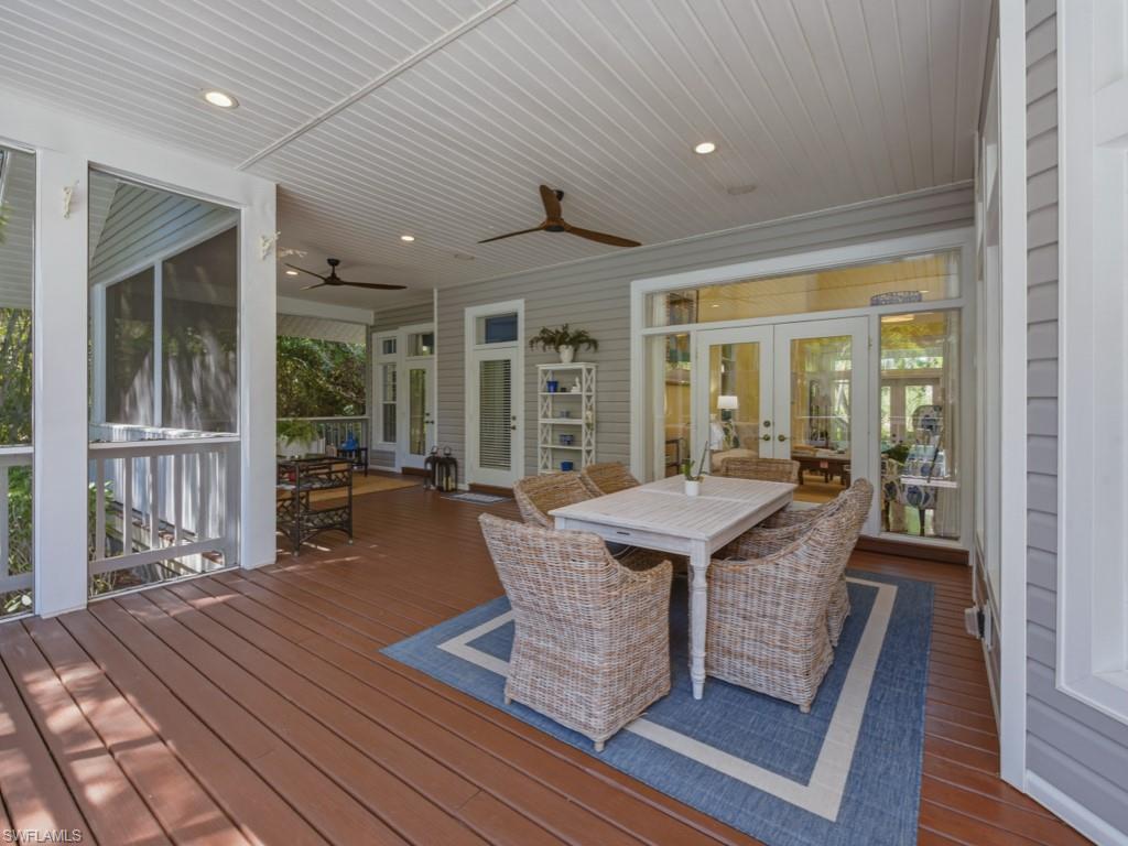 Tucked behind a gated entry on 2.5 acres of lush, wooded privacy, this exceptional Naples estate offers a rare and versatile opportunity with a primary residence and a guest residence, each with its own pool, perfectly suited for guest accommodations, multi-generational living or income-producing potential. The main residence embodies Florida charm, featuring a welcoming front porch, rich wood flooring throughout the main living areas, and seamless indoor-outdoor living. Designed for both everyday comfort and effortless entertaining, the home offers an array of flexible living spaces, including a formal dining room, living room, family room, and an expansive bonus room ideal for a media lounge, fitness studio, or game room. Outdoors, a large, screened lanai, custom-designed pool, and an outdoor equipped summer kitchen with built-in grills create a private retreat framed by mature, tropical foliage. Upstairs, the second floor is dedicated to a luxurious primary suiteu2014your own private sanctuaryu2014complete with custom walk-in closet and a spa-inspired ensuite bath, all finished in a timeless, understated aesthetic. Equally impressive, the fully detached guest residence offers approximately 1,480 square feet under air and its own private driveway. This spacious home lives like a residence of its own, featuring a primary bedroom with ensuite bath, large living room, full kitchen, dining or flex space, den, and a generous screened lanai with its own private pool. Ideal for extended family, long-term guests, or as a potential income-producing rental, it provides exceptional flexibility without compromising privacy. Southern exposure with expansive acreage, and a peaceful, Olde Naples style setting just minutes from Naplesu2019 Gulf beaches, shopping, and dining, this one-of-a-kind property delivers the perfect balance of seclusion and convenience. Estate opportunities like this in Livingston Woods are rareu2014where design, space, and versatility come together in a truly extraordinary offering.