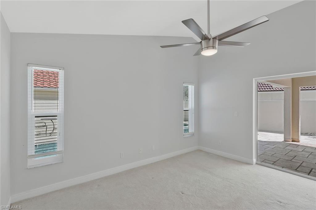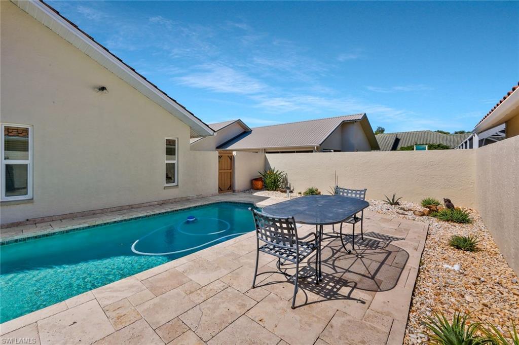 One or more photo(s) has been virtually staged, AI generated or rendered. Nestled in the heart of Naples, this exquisite property offers a serene retreat in the private and secluded gated community of Longshore Lake. A Palm Springs vibe permeates this residence, with all big-ticket renovations thoughtfully completed, NEWER AC, IMPACT WINDOWS & DOORS, NEW GARAGE DOOR ensuring both style and security. The home boasts a freshly painted interior and exterior, with an UPDATED KITCHEN & BATHROOMS featuring stainless steel appliances. Step outside to find a spacious lanai with a pool and spa with travertine decking, complemented by an additional water feature, perfect for relaxation or entertaining guests. Low-maintenance landscaping and a multi-zone irrigation system make it easy to enjoy the lush surroundings and create your own tropical oasis. Residents will appreciate access to community amenities such as a clubhouse with dining, a resort-style pool, a fitness room, and tennis courts, with pickleball courts coming soon. Ideally positioned, this home is just minutes from shopping, dining, and grocery stores, and a short drive to the renowned white sand beaches of Naples, offering the perfect balance of tranquility and convenience.