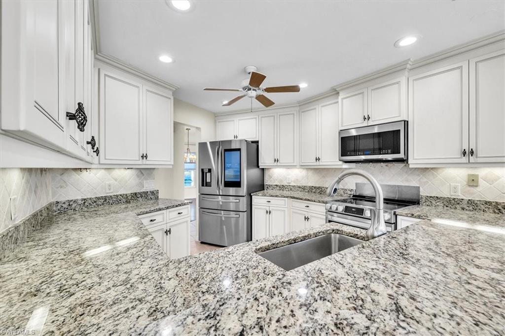 Welcome Home to Longshore Lake! Enjoy long and panoramic lake views with peaceful Florida living in this 3 Bedroom + Den, 2 Bath Solar Heated pool home located on an estate sized lot. When you step inside, you'll see a breathtaking lake view from the Living Room, Kitchen, Family Room and Primary Bedroom. Eastern exposure for your mornng coffee on the lanai. Home lives large for entertaining family and friends in a Formal Dining Room, Eat in Kitchen and large outside living area. Significant improvements add comfort and peace of mind, including Impact Glass Windows, Storm Smart Electric lanai shades, Storm Smart accoridon shutter on Family Room window, Full-House gas generator with a 1,000 gallon tank, Picture Window Screen Enclosure, Newer Wi-Fi enabled Samsung Refrigerator with computer screen, LG Studio Induction/Convection range, Dishwasher, Microwave, GE Washer/Dryer, Smart Home technology with energy efficient enhancements, LED lighting throughout and more! A MUST SEE for the BEST BUY in Longhsore Lake. Seller says BRING ALL OFFERS! Longshore Lake has wonderful amenities to include Clubhouse Dining/Restaurant, Fitness Center, Professional Tennis Programs with Pro, Activities galore for all ages, Boating/Kayaking, Private and Public Golf minutes away. North Naples location is close to Shopping, Restaurants, Gulf Beaches and I-75 Don't miss the opportunity to call this home yours. Schedule your private showing today and start living the Florida lifestyle in Longshore Lake!