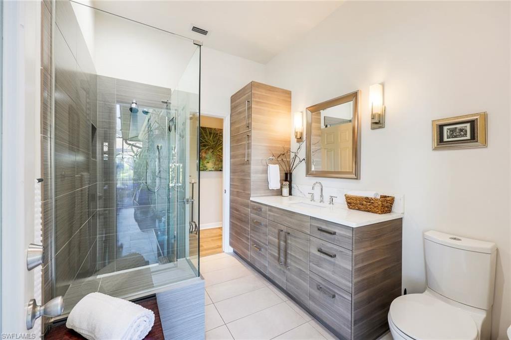 A rare opportunity to own an exceptional residence on one of the most expansive homesites in Longshore Lake. Situated on approximately 0.45 acres, this beautifully maintained property offers 3 bedrooms, 2 bathrooms and 2 versatile dens, perfectly suited for a private home office and an inviting music or relaxation room complete with a fireplace. An ideal combination of refined finishes, thoughtful updates, and serene lakefront living.Significant improvements include a roof replaced in 2020, a water heater updated around 2020, along with hurricane shutters throughout for added security. The outdoor living space is truly impressive, showcasing a large pool and entertainment area overlooking the lake, framed by mature privacy hedges. The pool has been recently re-tiled and re-plastered, features both solar and electric heating, and is supported by new pool equipment installed in 2022. A travertine pool deck and jacuzzi with dual heating complete this resort-style retreat.Inside, the kitchen is designed with classic soft-close cabinetry, light granite countertops, stainless steel appliances, a cooktop with an extraction hood, and a purified water faucet. The bathrooms are equally refined, offering statuary white marble countertops, frameless glass showers, and high-end Hansgrohe fixtures. Flooring throughout the home includes vinyl in the main living areas, bamboo in the bedrooms, and porcelain tile in the bathrooms, reflecting quality craftsmanship at every turn.Residents of Longshore Lake enjoy an active, social lifestyle with access to eight tennis courts, soon (by April 2026) 4 pickleball courts, a fitness center, basketball court, playground, and a welcoming (Soon to be updated) clubhouse featuring a restaurant and bar with picturesque lake views. The community also allows electric boats, kayaks, canoes, and paddleboards, enhancing the waterfront experience. This is a standout opportunity to enjoy lakefront living in one of North Naplesu2019 most desirable communities, offering privacy, amenities, and a beautiful natural setting.
