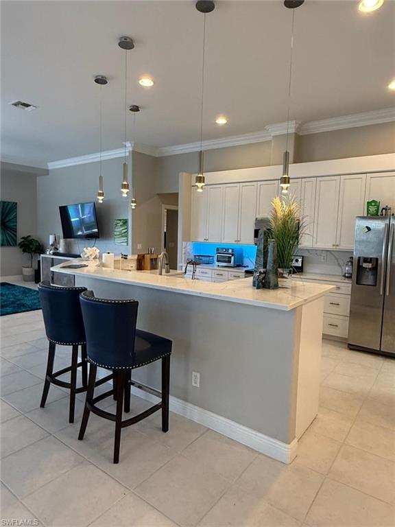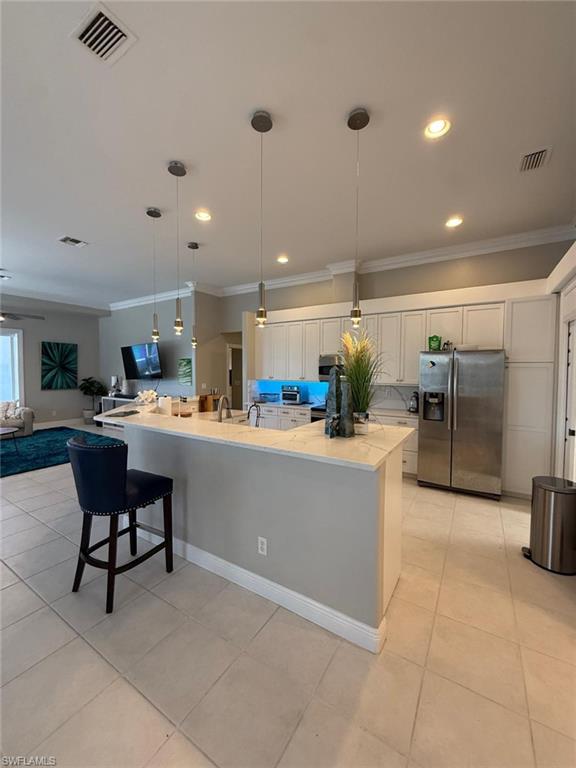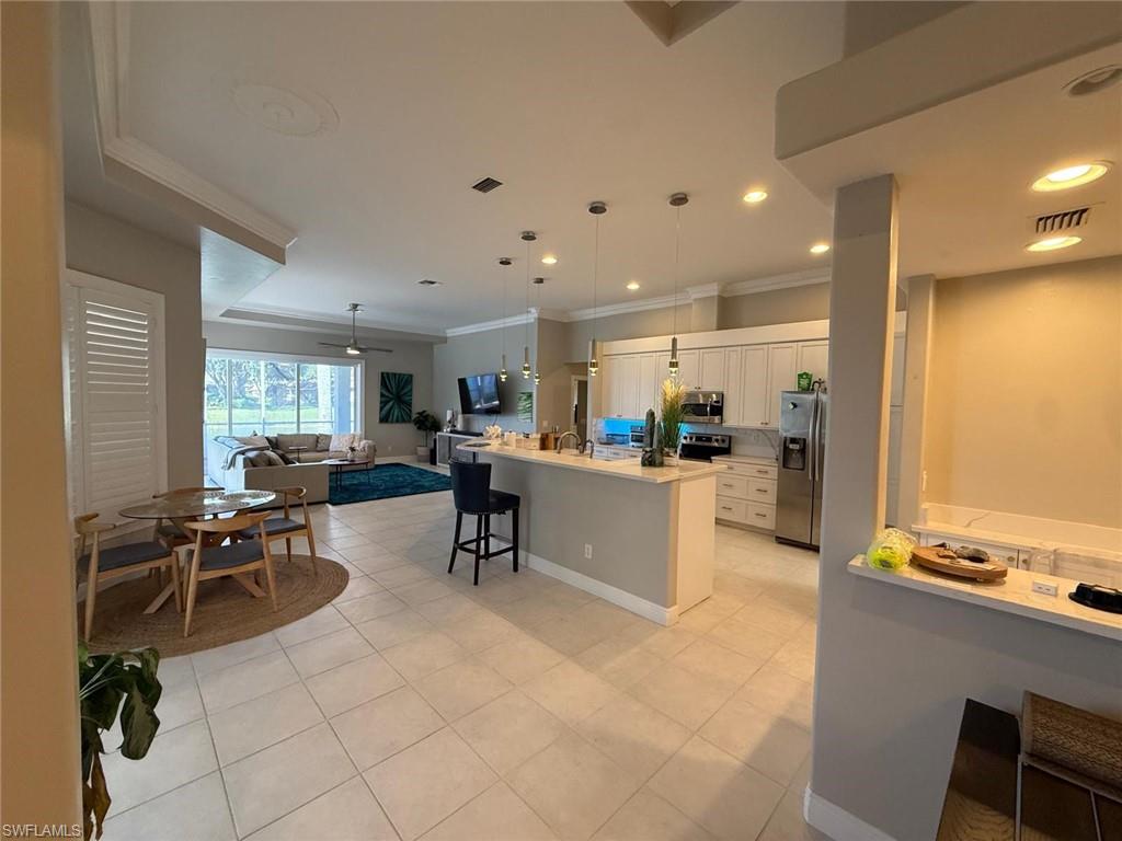 Rare opportunity to own this beautifully updated and fully furnished 4BR/3BA lakefront home in the gated community of Longshore Lake. This move-in-ready residence offers an open floor plan, zero-edge pocket sliders, oversized paver lanai, private dock, and stunning western lake views. Features include quartz countertops, stainless steel appliances, luxury flooring, updated baths, plantation shutters, wet bar with wine fridge, newer A/C, newer roof, elegant crystal chandeliers included with the property, and a spacious 2-car garage with side exit door. Enjoy resort-style amenities including boating, kayaking, tennis, fitness center, clubhouse dining, and a prime North Naples location near shopping, restaurants, and beaches.