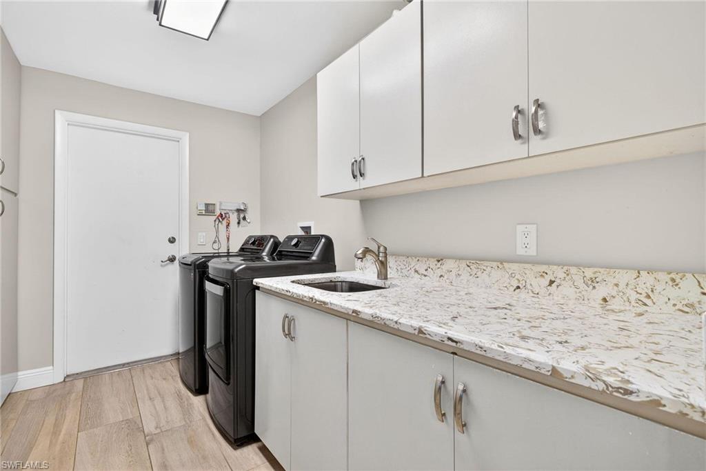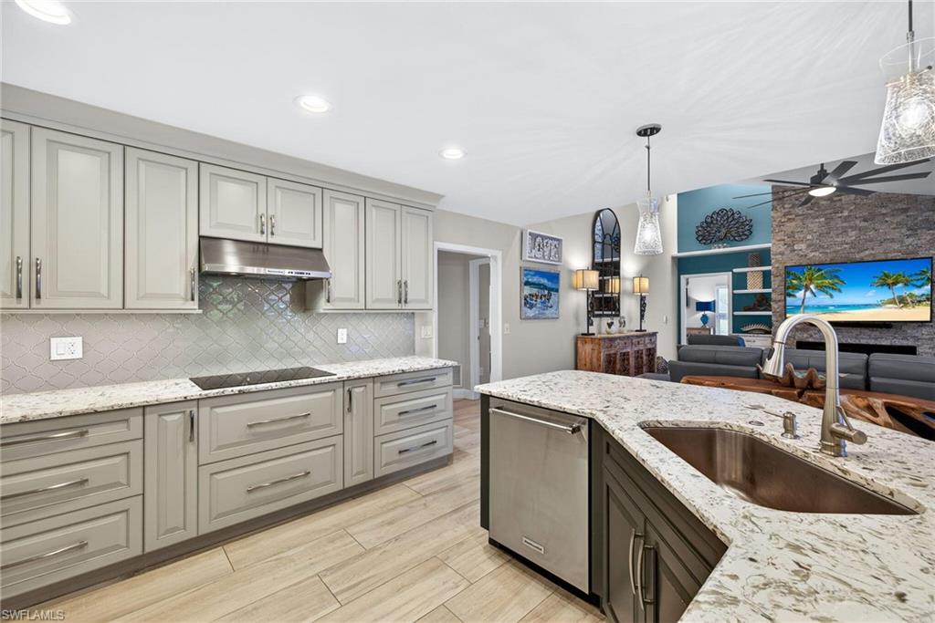 Welcome to your waterfront dream home in Longshore Lake! Conviently located in North Naples close to the best restaurants, shops and the beach just minutes away. This recently updated home features 4 Bedtooms and 3 Baths with 2 owners suites and a view of the water from every room. The heart of the home is a gorgeous updated kitchen overlooking the family room with a floor to ceiling stone fureplace. The floors have all been updated with wood and porcelain coastal tile made to look like wood throughout. The home transitions perfectly to an indoor/outdoor oasis through the pocket sliders from the living room, family room and owners suite featuring a saltwater heated pool, custom outdoor kitchen and separate entertainment area with 2 beverage centers and a built in gas grill. The property boasts multiple bedrooms with generous closet space, luxurious bathrooms, and a serene backyard appropriate for relaxation. Enjoy the Florida lifestyle in a peaceful community with convenient access to local amenities. The newly added brick paver patio showcases the best view of the lake with close access to the dock and electric bass tracker boat which comes with the home. Enjoy the active lifestyle in Longshore Lake which includes a fantastic clubhouse with tennis, pickleball, fitness center, pool and restaurant and bar.
