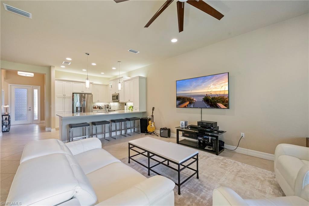 `Live life beautifully in Southwest Florida` in this stunning attached villa located in Marbella Isles, a resort-style, low-fee, gated community in central Naples. Built in 2017, this desirable Oxford floor plan offers 2 bedrooms plus a den and 2 bathrooms, thoughtfully designed with numerous upgrades throughout.The home features a model-quality kitchen with stainless steel appliances, tile flooring throughout the main living areas, and luxury vinyl flooring in the primary bedroom. Upgraded hurricane-impact windows and sliders provide added protection and peace of mind. Enjoy western exposure with serene lake views, ideal for sunset relaxation. Tucked away at the end of a private street with no homes to the right, this villa offers exceptional privacy.Marbella Isles offers an impressive array of amenities, including a clubhouse, resort-style pool, kiddie pool with slides, pickleball and tennis courts, half-court basketball, volleyball court, fitness center, game room, and card room.Perfectly located just 10 minutes from Naplesu2019 beautiful beaches and Mercato, 15 minutes to downtown Naples, and only 25 minutes from Southwest Florida International Airport, this home delivers the ideal combination of luxury, convenience, and Florida lifestyle